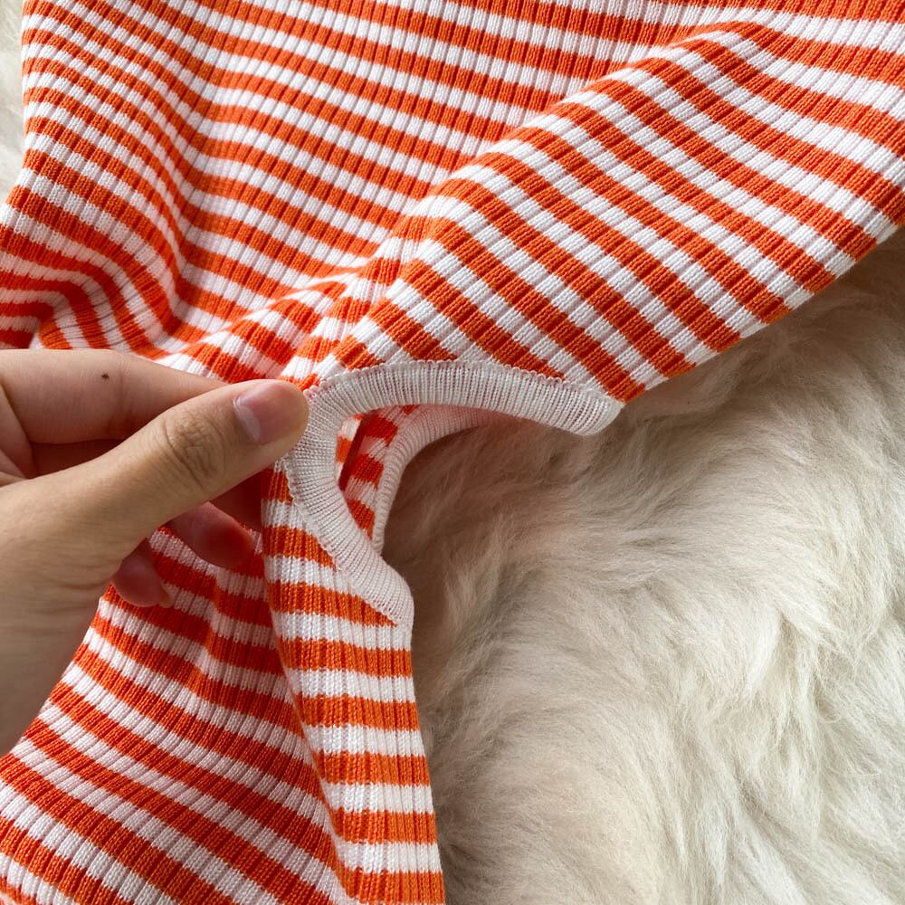 Gentle style retro striped off-the-shoulder knitted dress tight-fitting hips show thin and scheming waist-split mid-length skirt レトロ スカート ストライプ lyxaj4656675080
