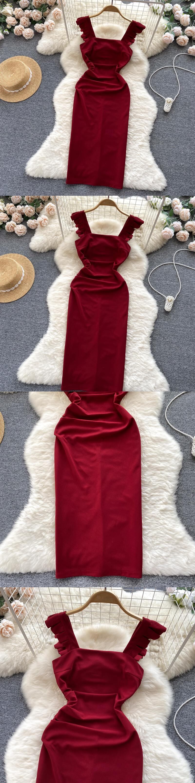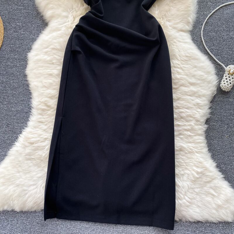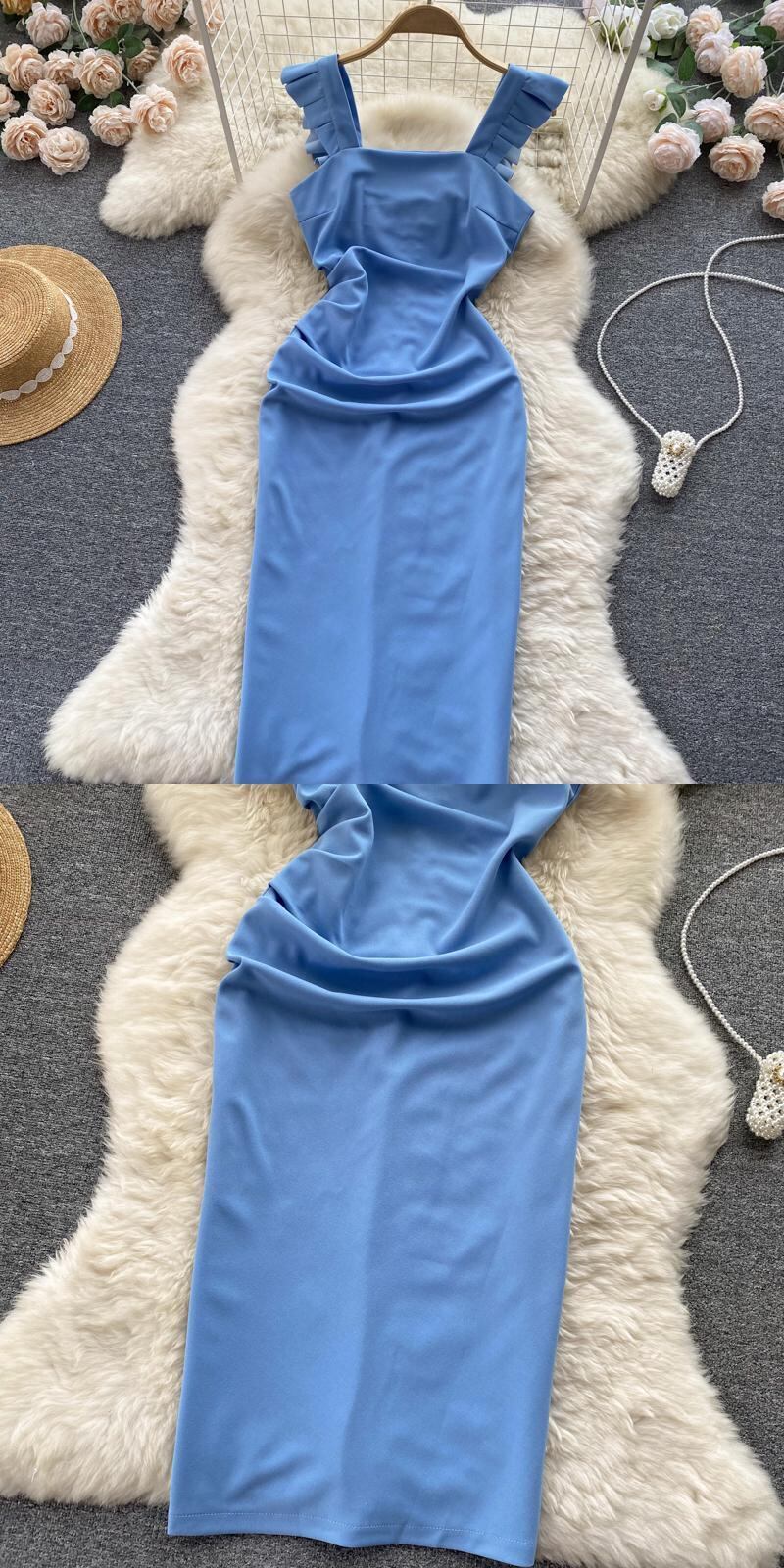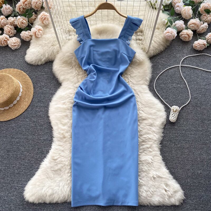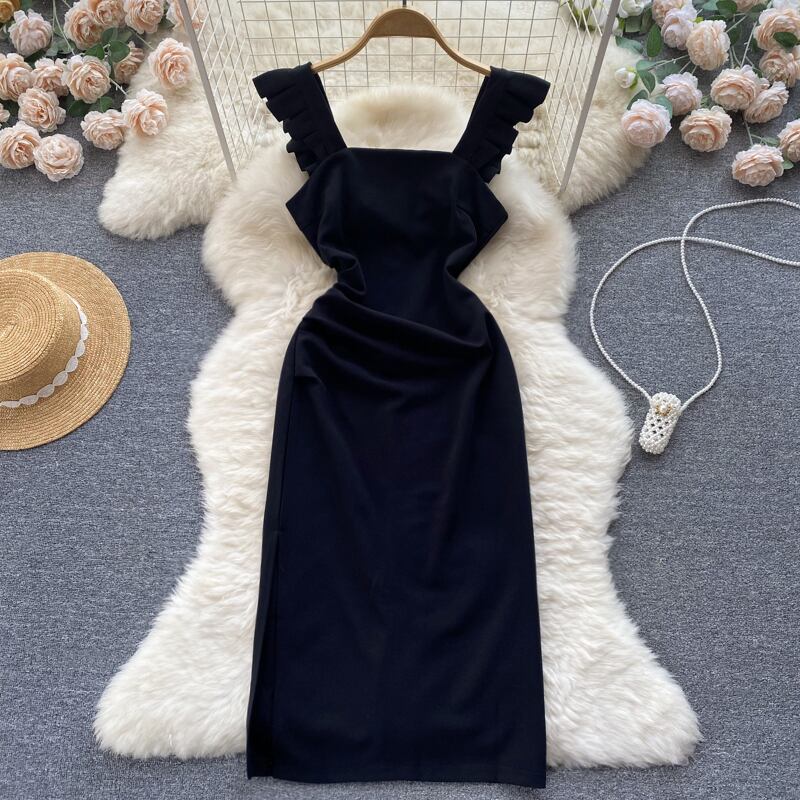 Retro square neck flying sleeve Hepburn dress summer new French niche temperament slim bag hip long skirt ロング レトロ サマー 夏物 スカート スリム スクウェア lyxaj89427429974