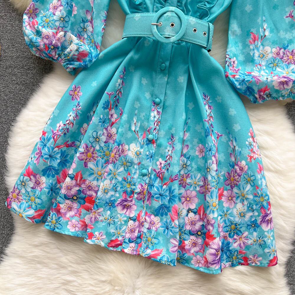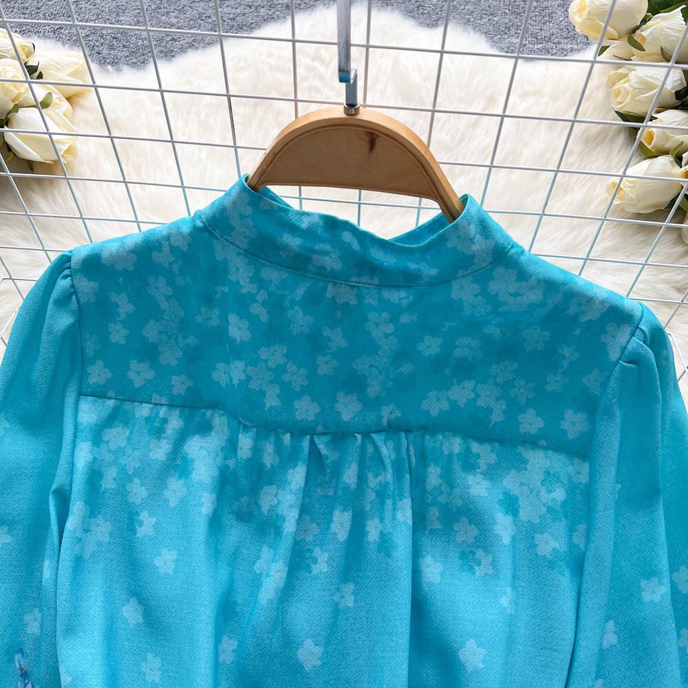 2022 new summer wavy wide skirt high-end retro printed A-line skirt bubble waist slim dress レトロ プリント サマー 夏物 スカート Aライン スリム lyxaj46315494512