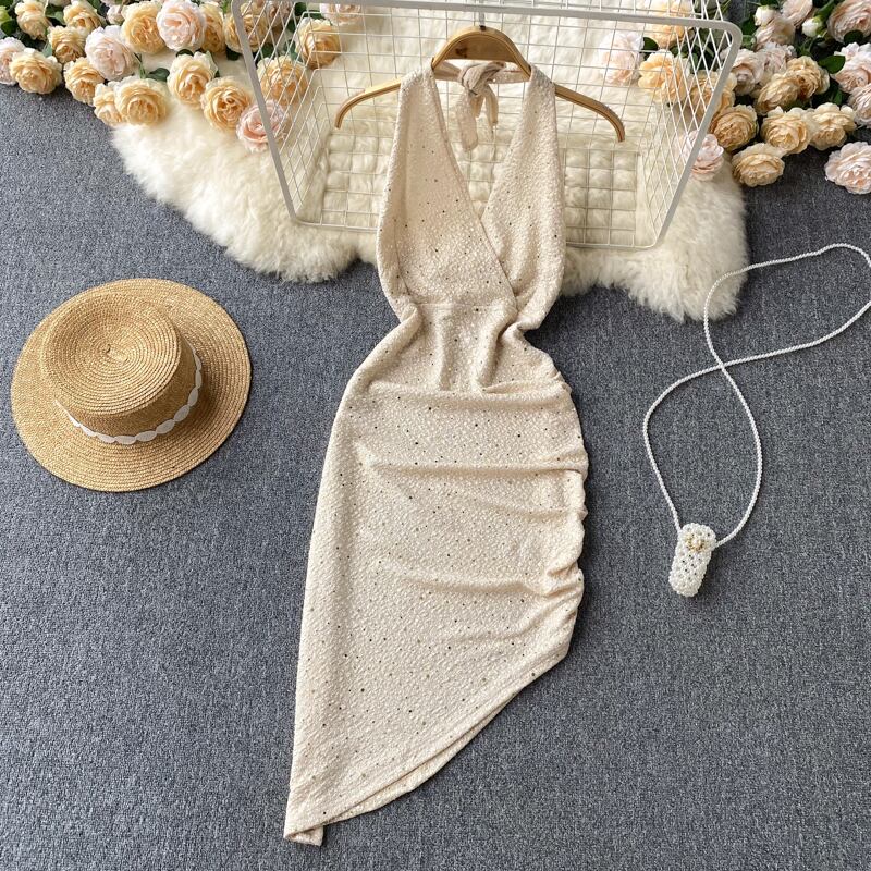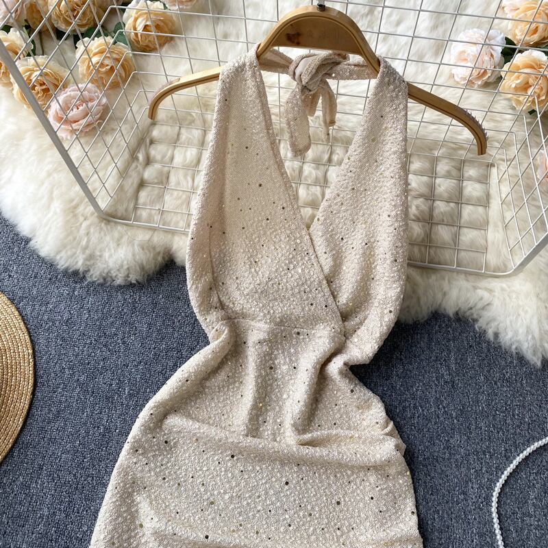 Sexy femininity hanging neck V-neck beautiful back dress female summer 2022 new slim temperament package hip short skirt ショート サマー 夏物 スカート Vネック スリム lyxaj79407071456