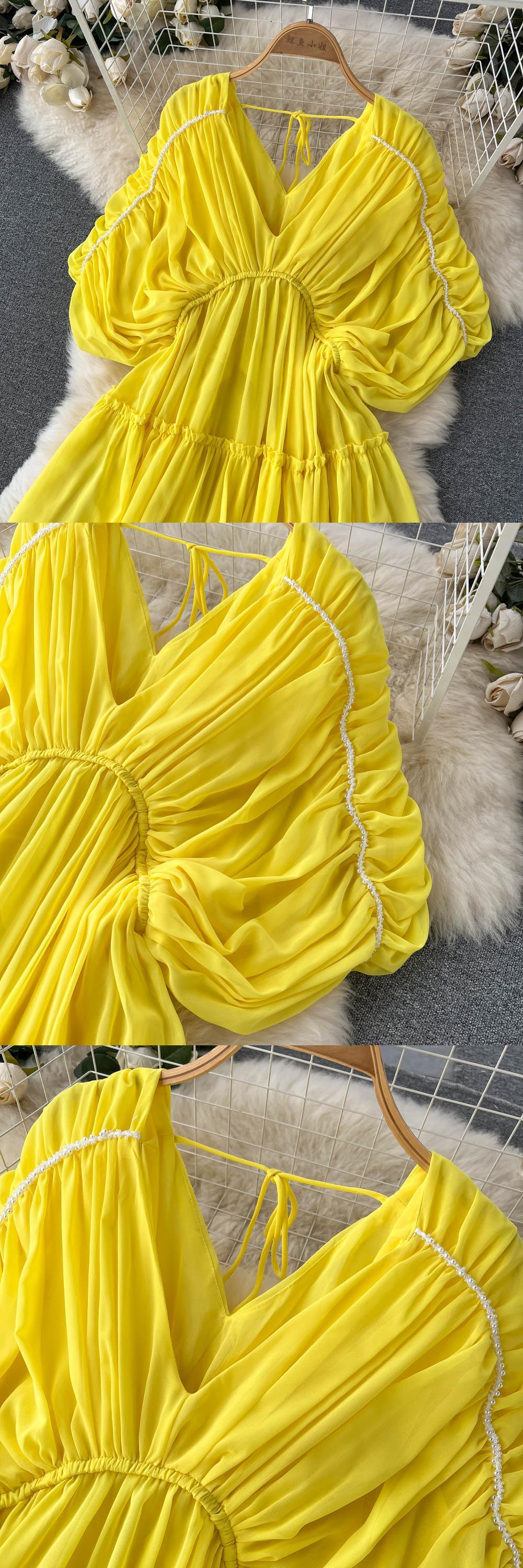Seaside holiday beach skirt super fairy V-neck chiffon dress summer 2022 new high waist slim skirt ハイウェスト シフォン サマー 夏物 ビーチ スカート Vネック スリム lyxaj49020078977