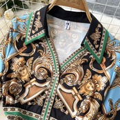 Palace retro printing V-neck dress high-end sense Yujie Fan Slim body is thin and eign style light luxury large swing A-line skirt レトロ レース スカート Vネック Aライン スリム lyxaj33305989223
