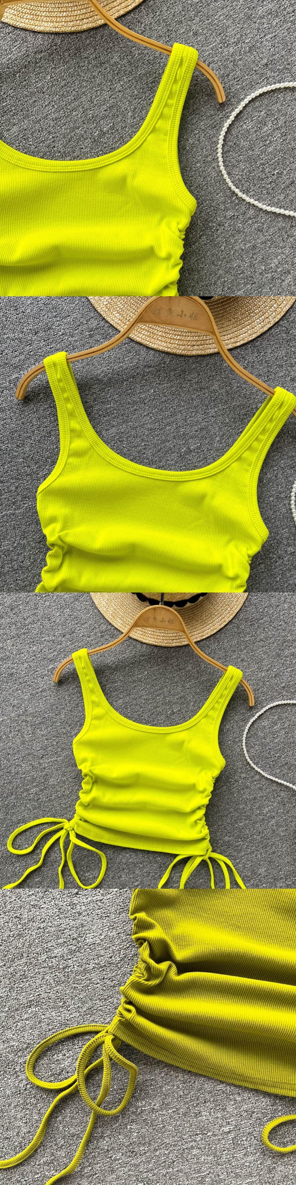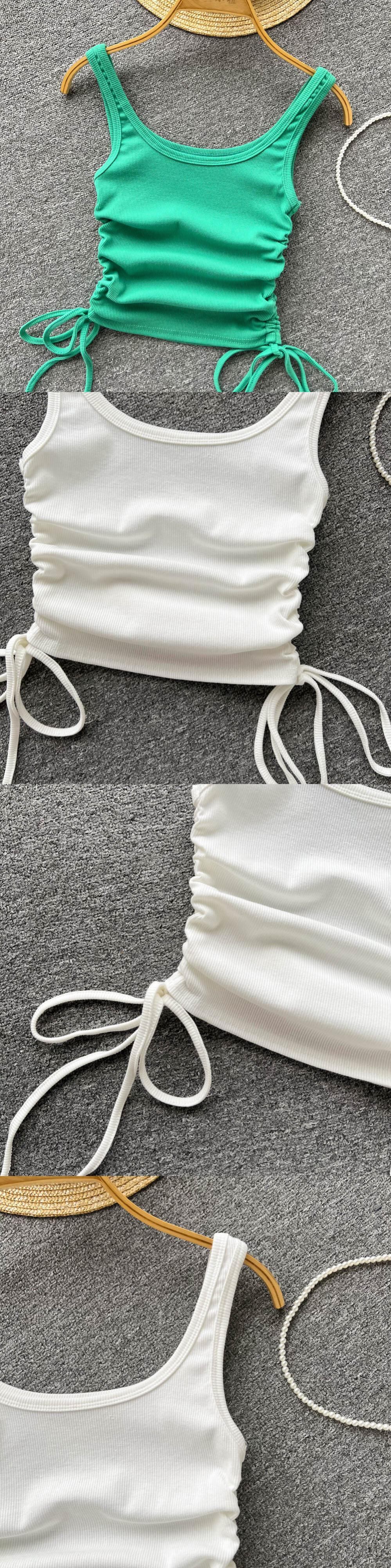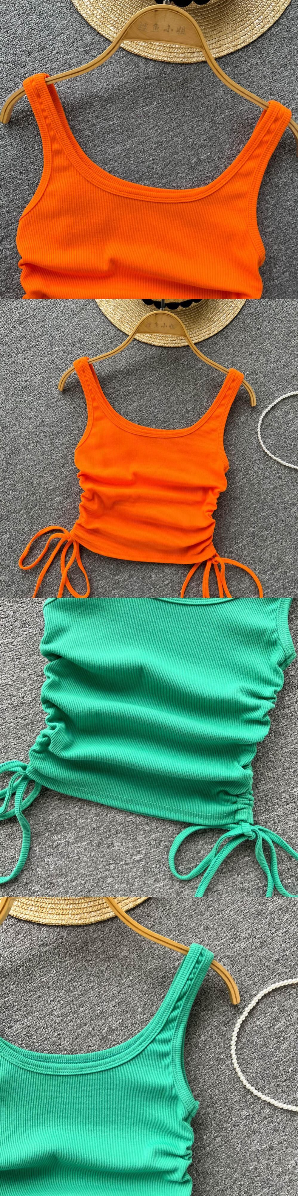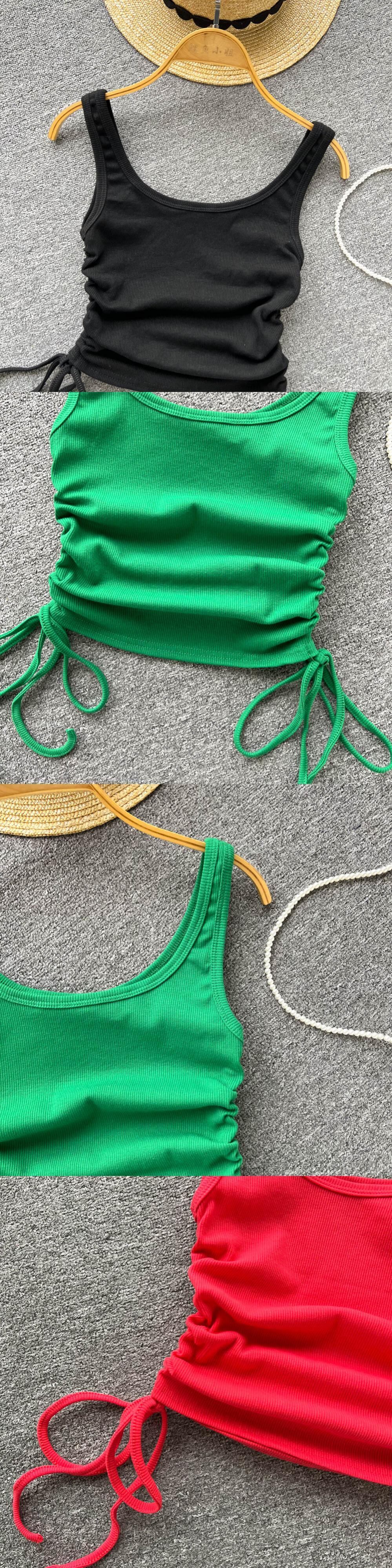 Short Double Drawstring Pullover Round Neck Sleeveless Vest T-Shirt Summer Solid Color Slim Fit Thin Versatile Top ショート サマー 夏物 ノースリーブ Oネック スリム Tシャツ ソリッドカラー lyxaj85405345079
