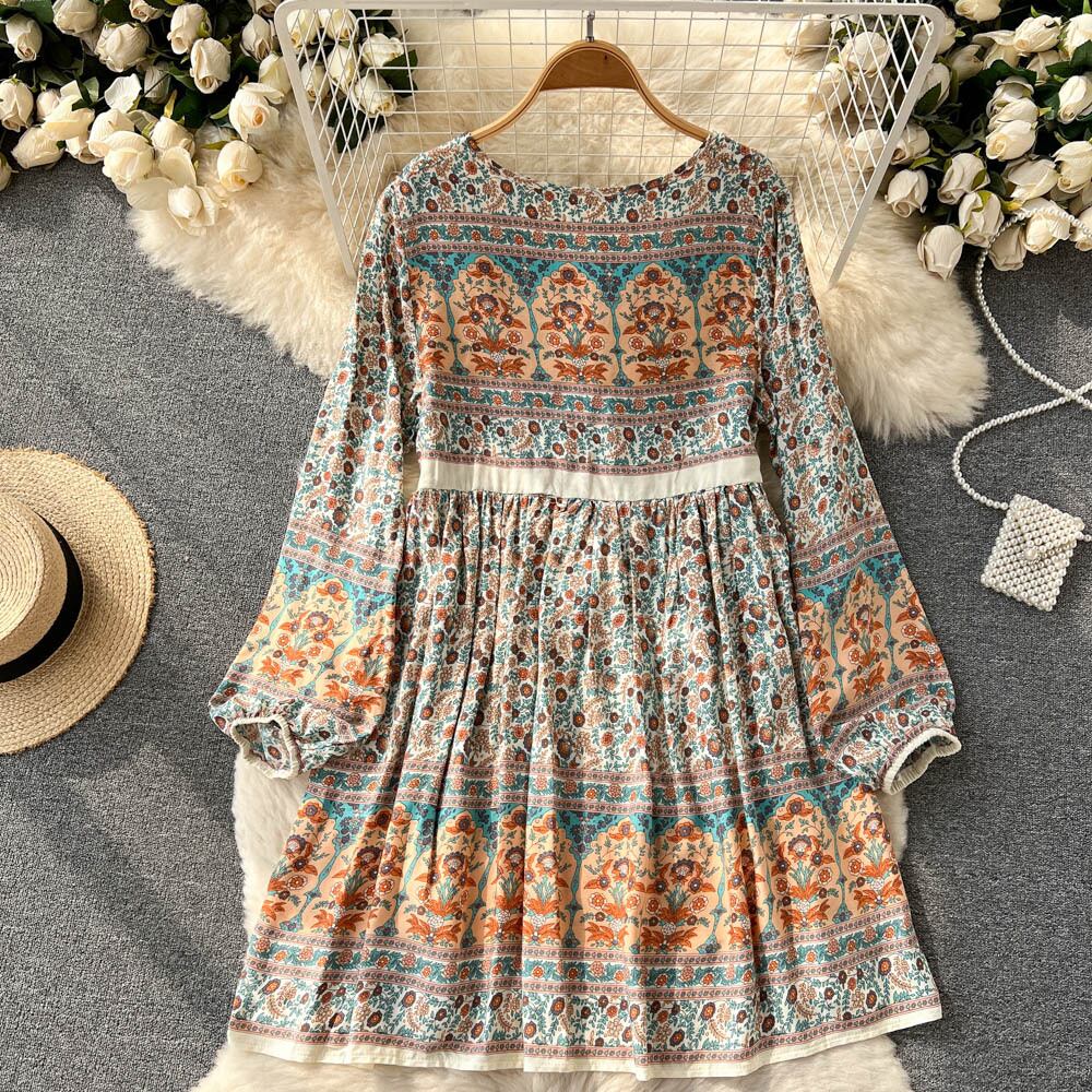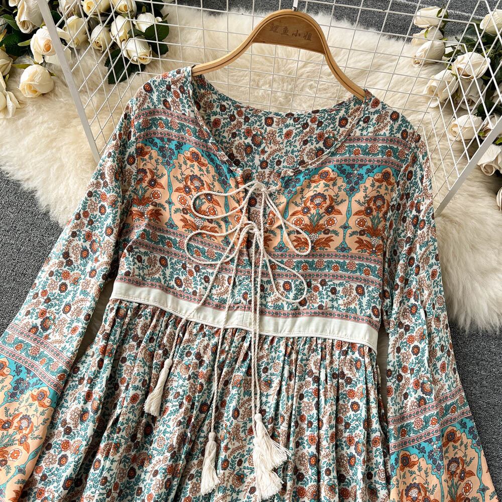 2022 spring and autumn new European and American women's clothing V-neck straps loose all-match temperament palace printing A-line dress women レース スプリング 春物 オータム 秋物 Vネック Aライン ヨーロピアン lyxaj60901277569