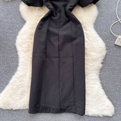 -quality square-neck black dress summer dress short-sleeved tea break small black dress is thin and temperament split long skirt trendy ロング ブラック サマー 夏物 スカート スクウェア lyxaj50225340670