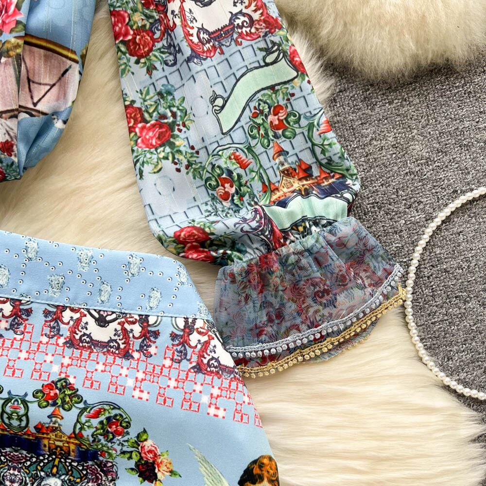 -end light luxury retro palace style ladies temperament stand-up collar light familiar style niche printing age-reducing fashion two-piece suit レトロ レース lyxaj61469053573