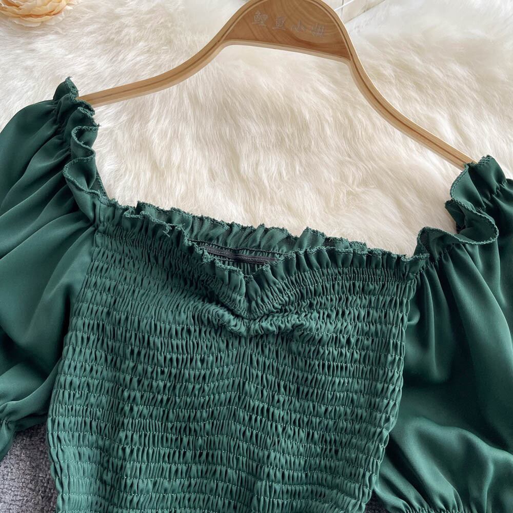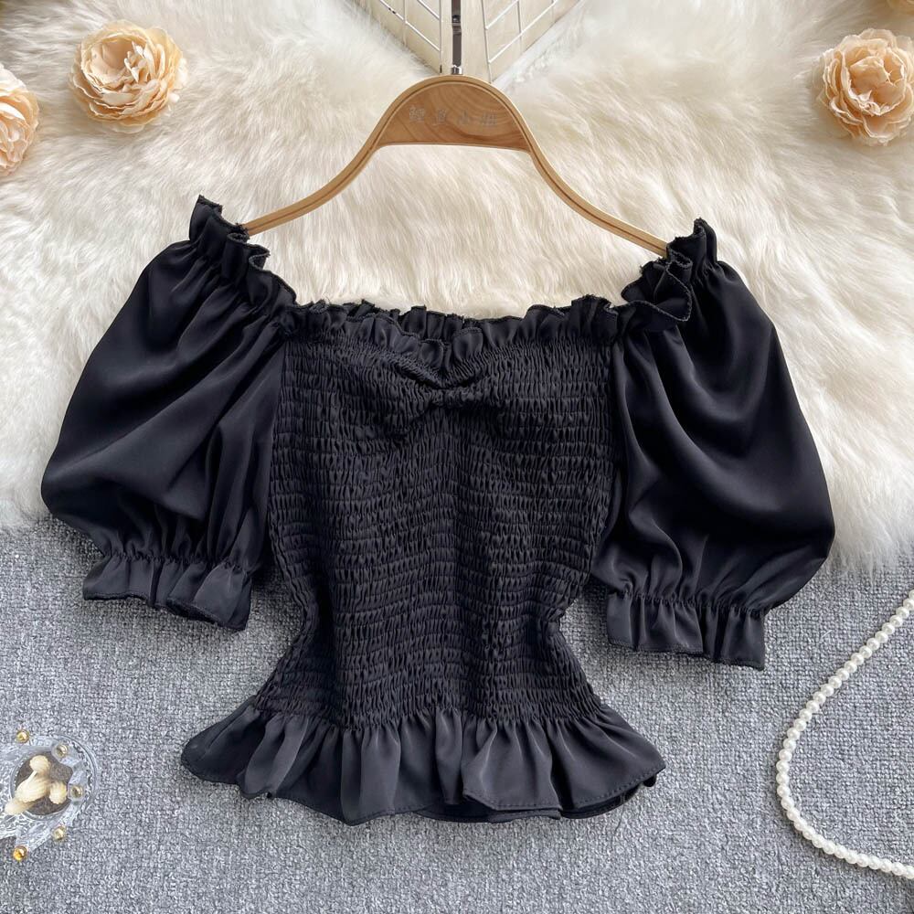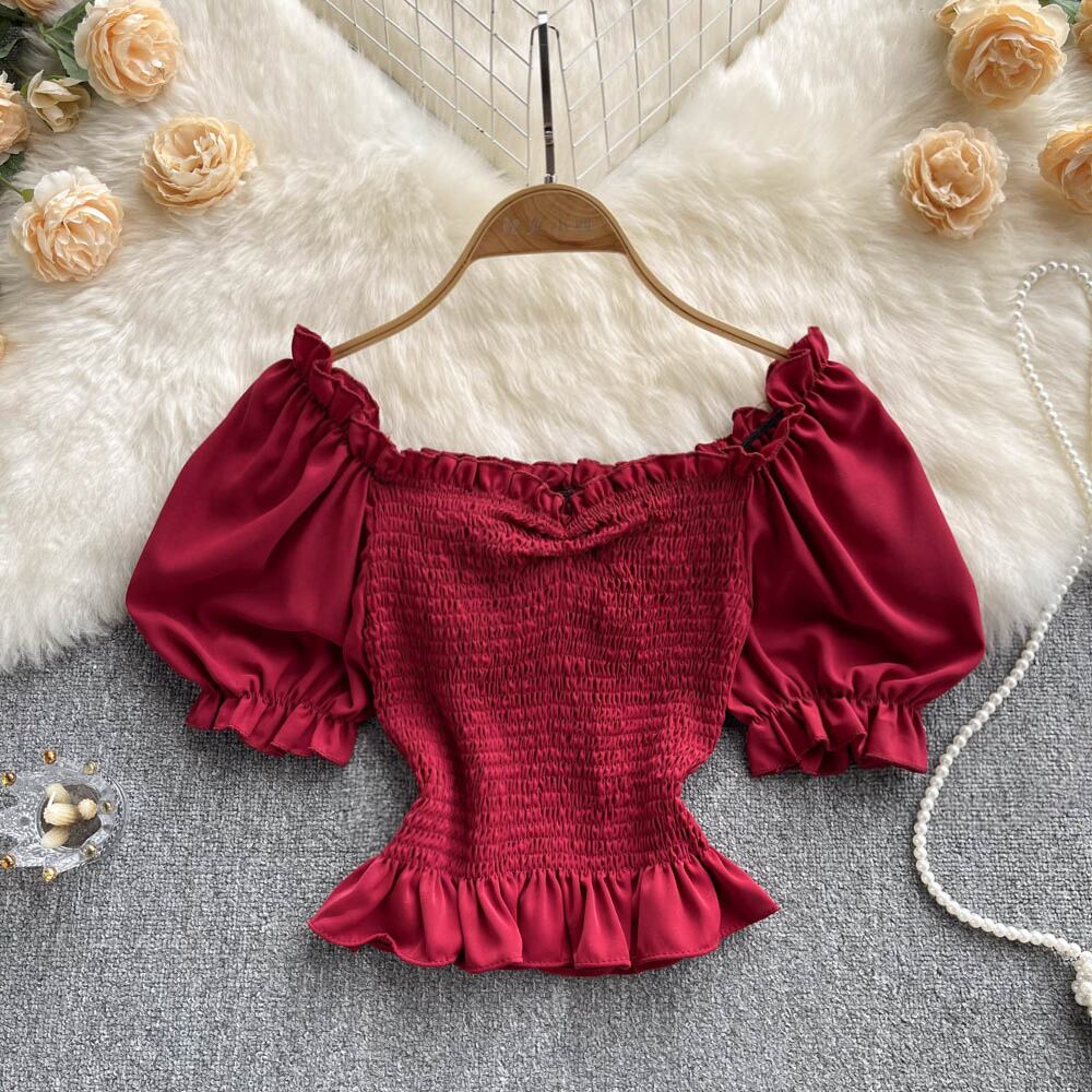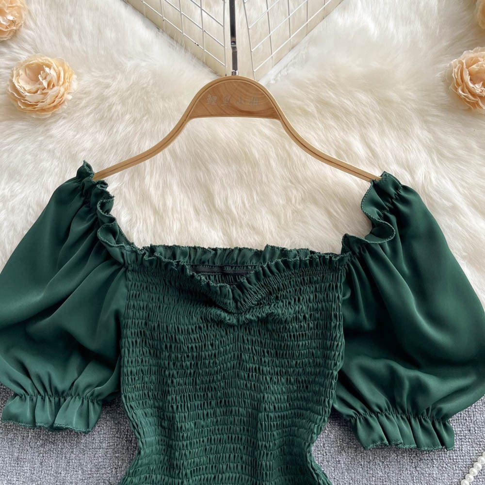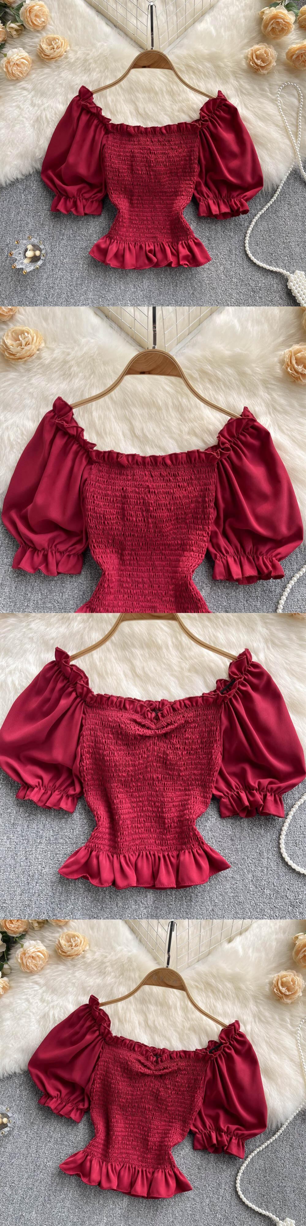 Bubble short-sleeved corset square-neck top women's 2022 summer new high-waisted short-sleeved plaid small chiffon shirt シフォン コルセット サマー 夏物 スクウェア lyxaj60385596413