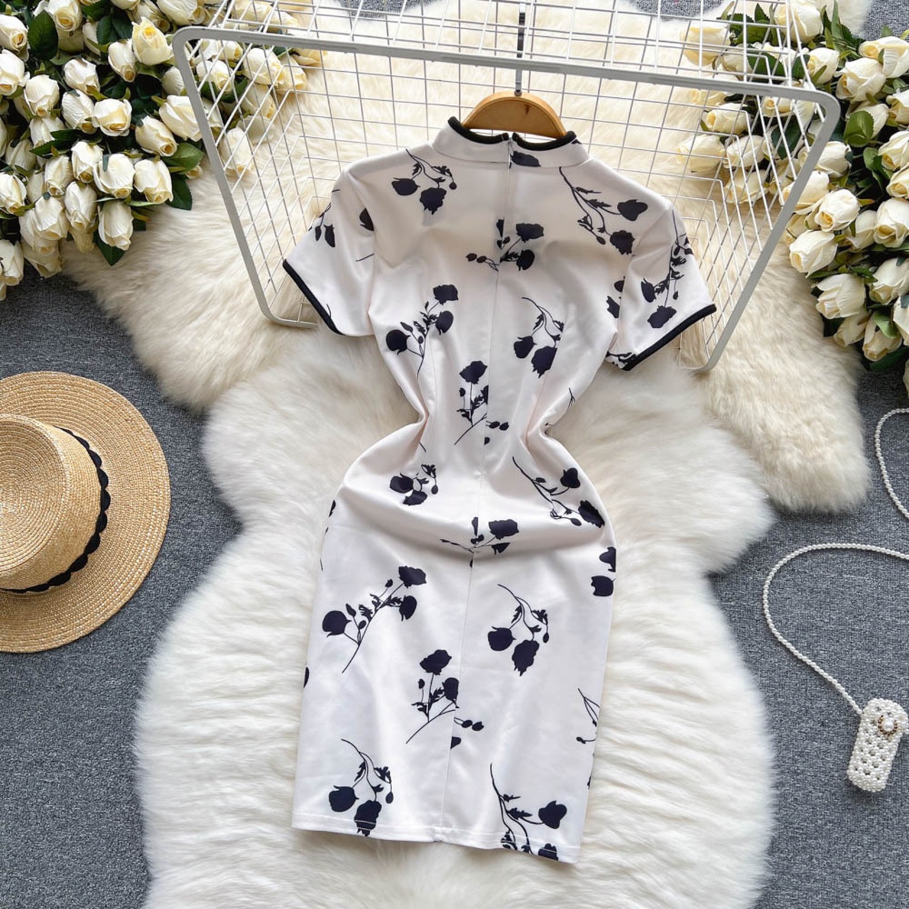 Light familiar style printed cheongsam dress summer women's high-end sense of slim slimming printed slit bag hip skirt tide プリント サマー 夏物 スカート スリム lyxaj82057532077