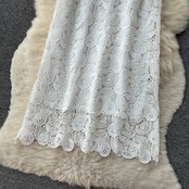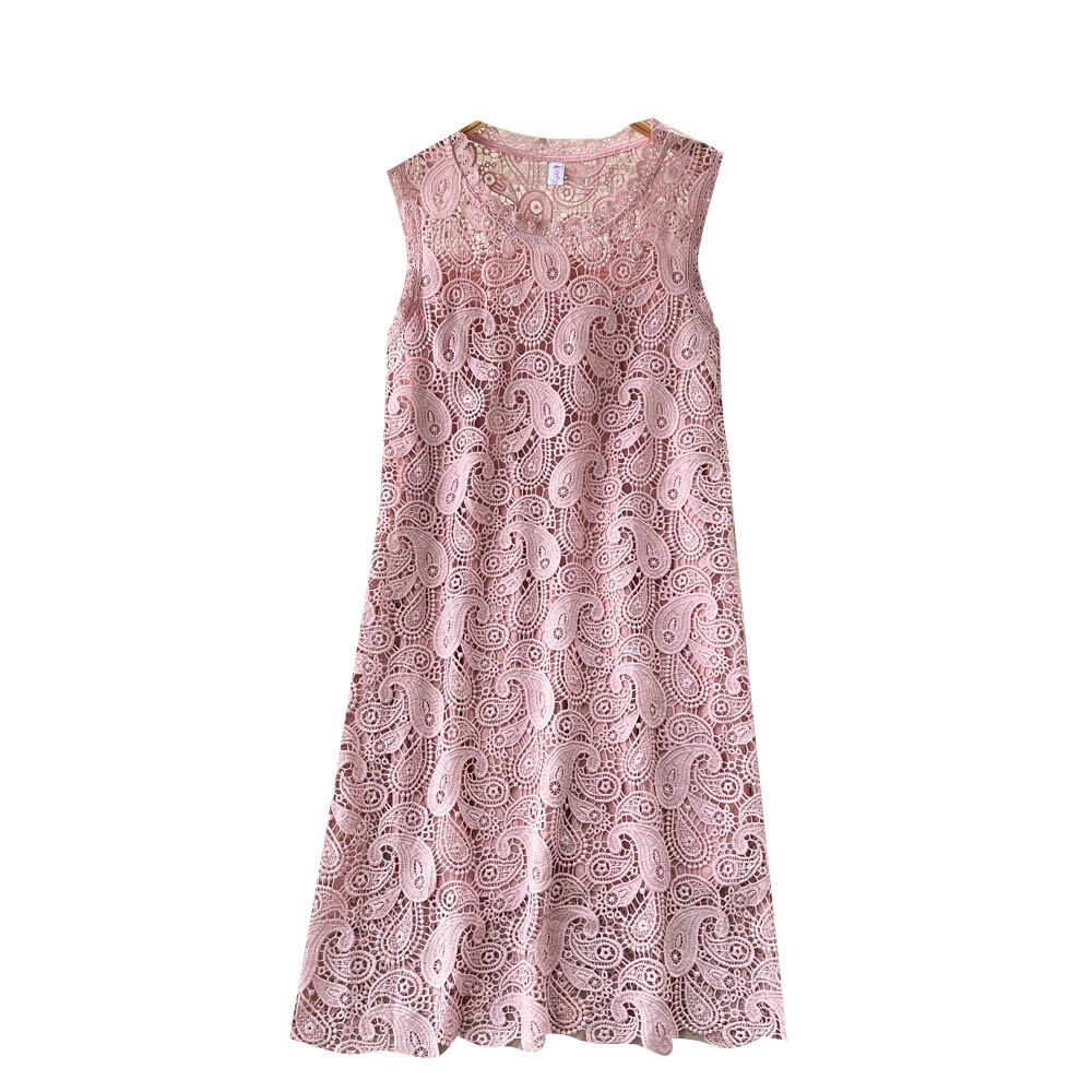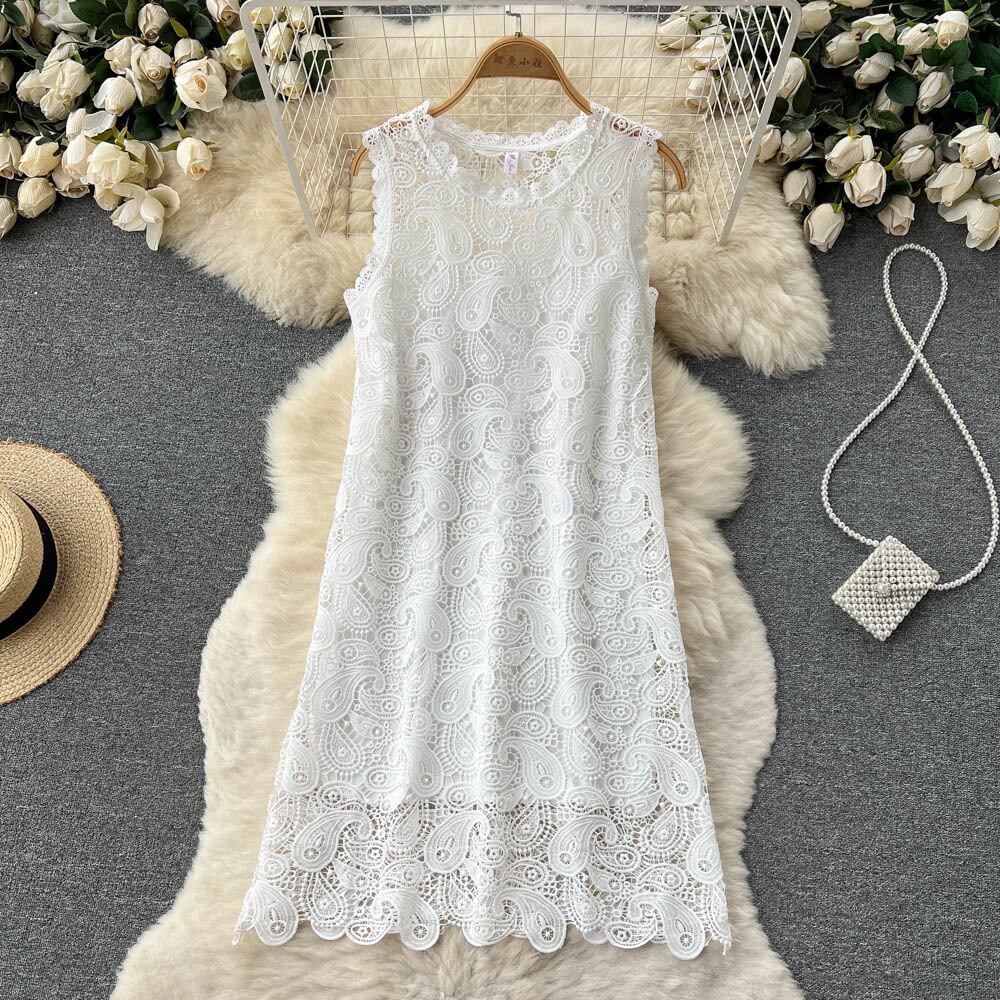 Chic wind fairy sweet temperament sleeveless lace dress women's summer new loose super fairy mid-length A-line skirt レース 大人ガーリー スウィート キュート カジュアル サマー 夏物 ノースリーブ スカート Aライン lyxaj46290311245