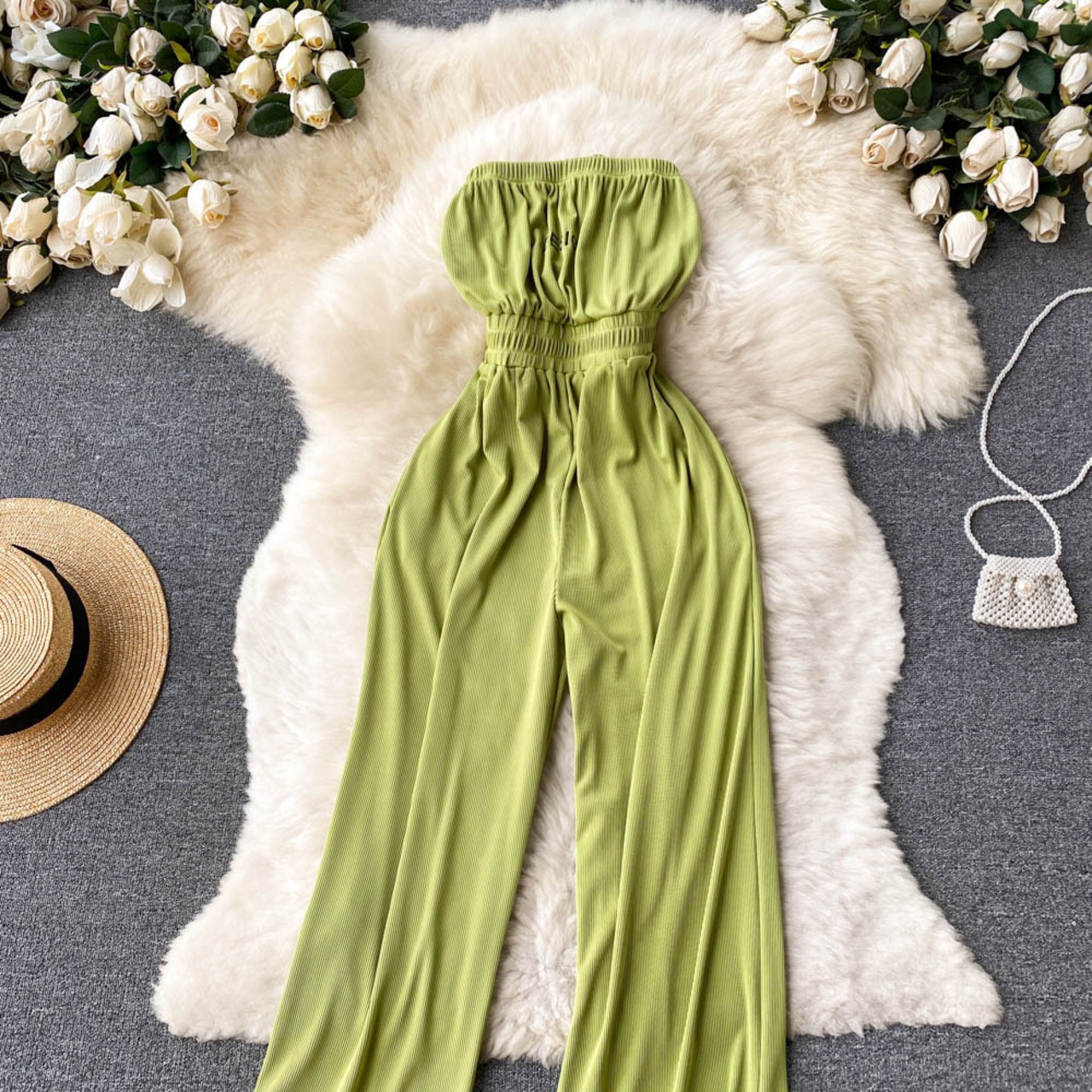 Yujie's light and familiar style, sexy tube top, one-word neck jumpsuit, women's summer high waist, thin and sagging casual wide-leg trousers ハイウェスト カジュアル サマー 夏物 lyxaj82185096132