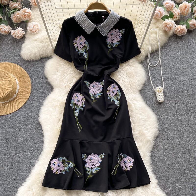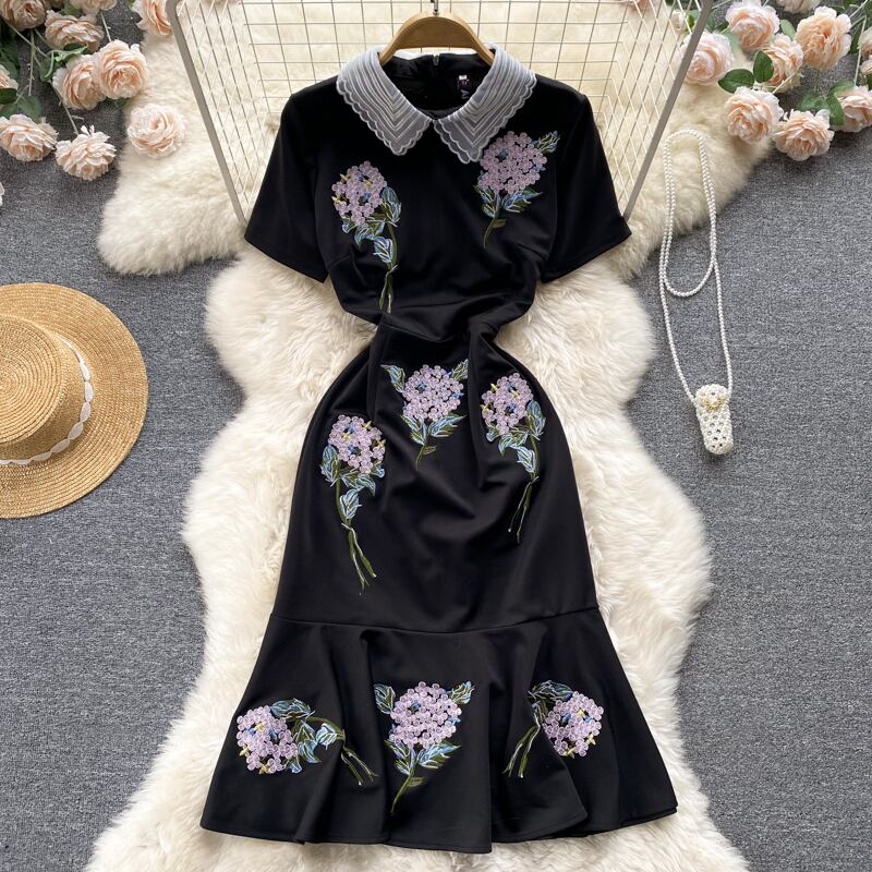 European and American style new summer elegant fishtail dress retro light cooked embroidery waist thin OL temperament skirt tide レトロ 刺繍 エレガント サマー 夏物 スカート ヨーロピアン lyxaj10577382808