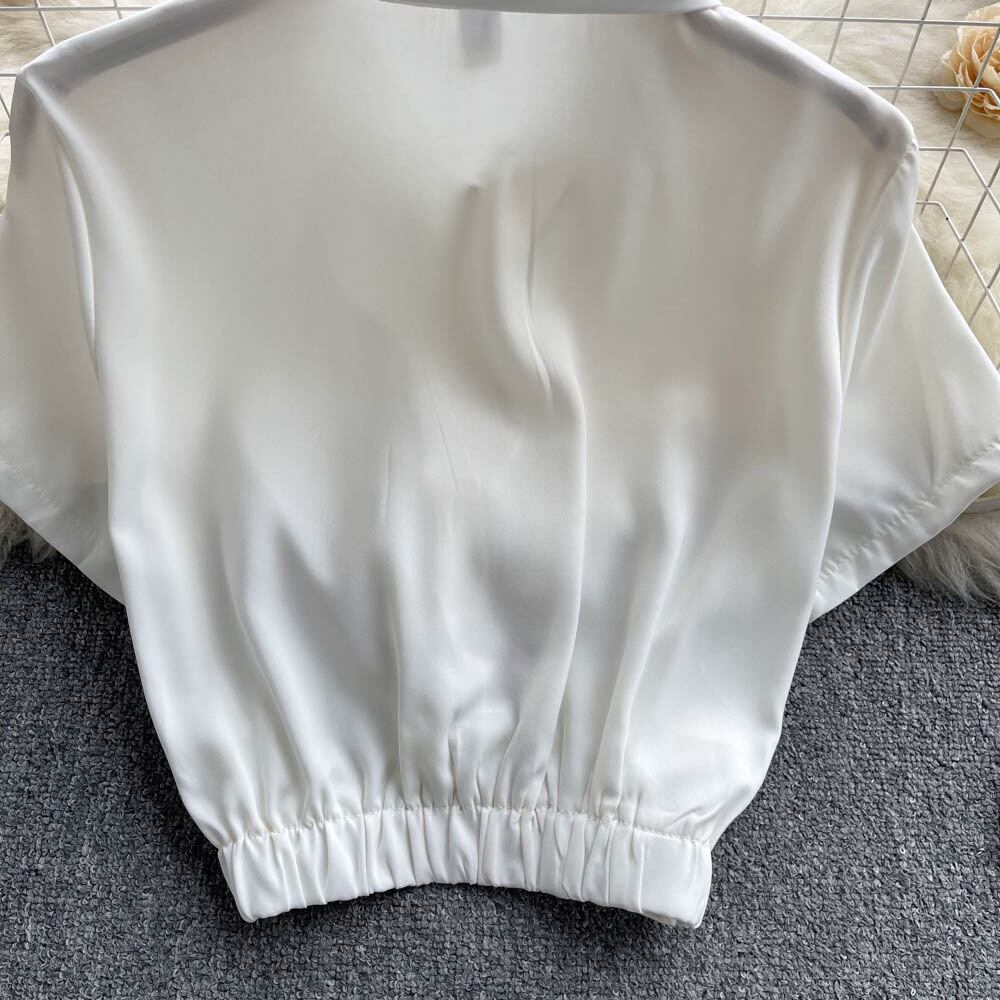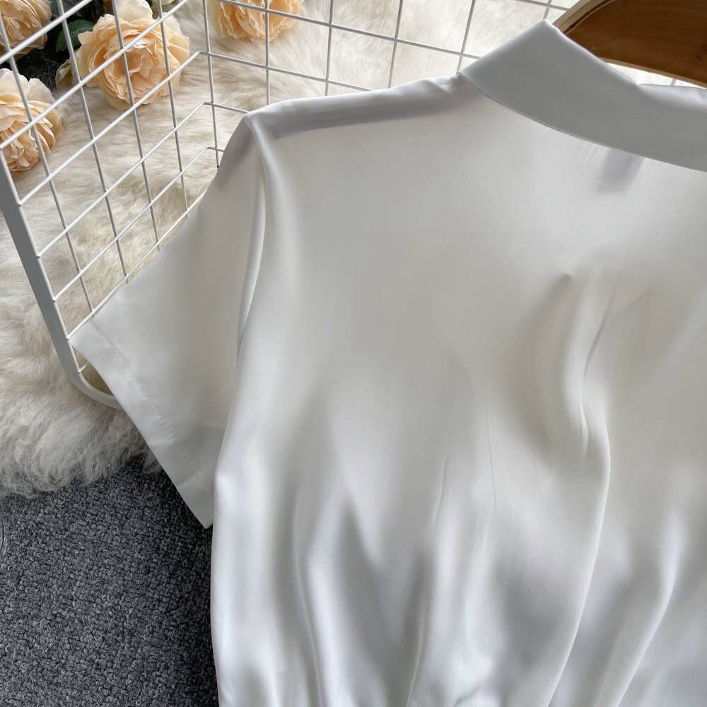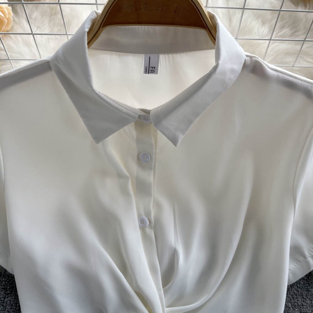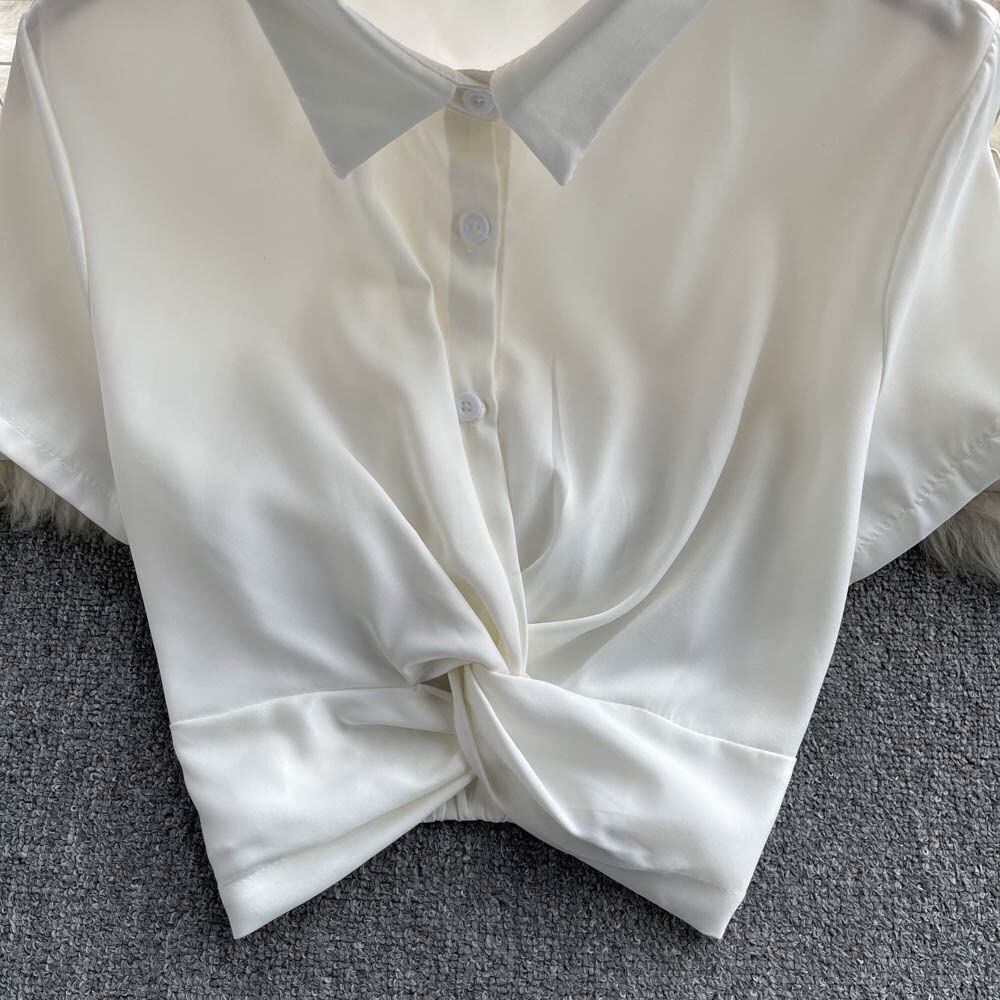 2022 summer new solid color lapel single-breasted short-sleeved shirt women's design sense niche kink short top trend ショート サマー 夏物 ソリッドカラー lyxaj60456116610