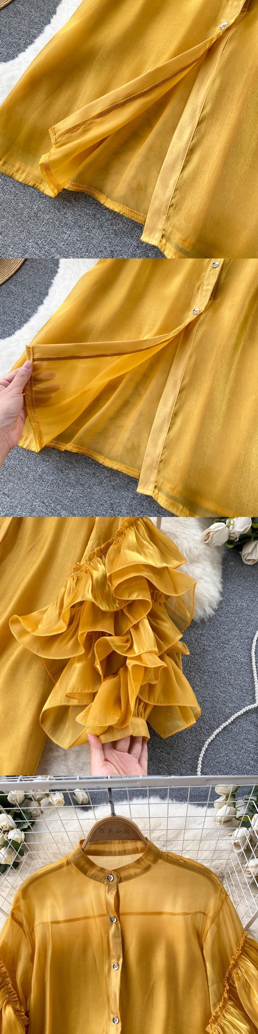 Spring new European and American style design sense French flounce three-dimensional flower sleeves loose single-breasted skirt trendy スプリング 春物 スカート フラワーデザイン ヨーロピアン lyxaj25377013143