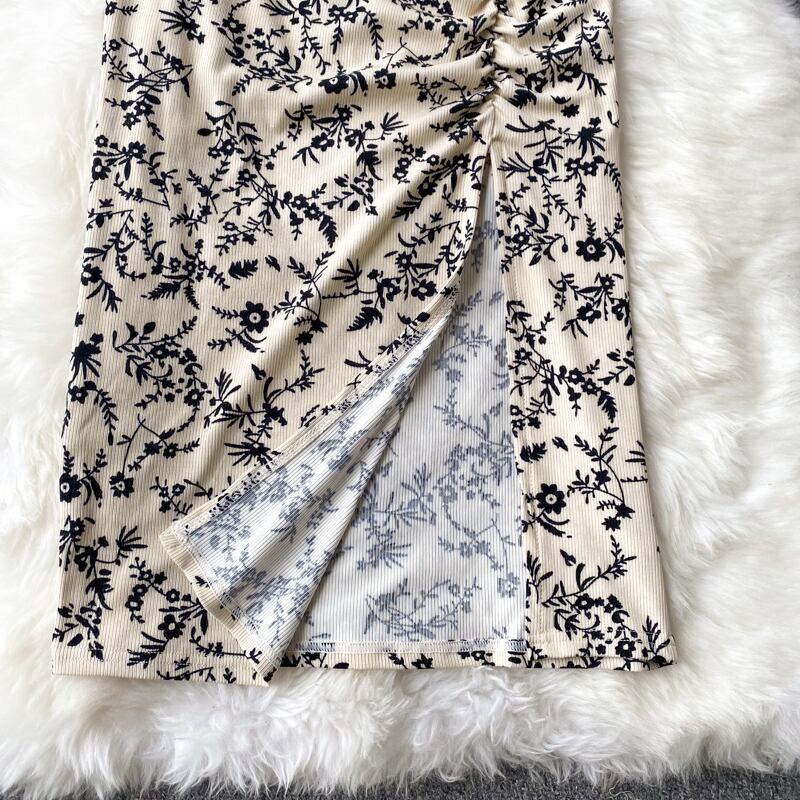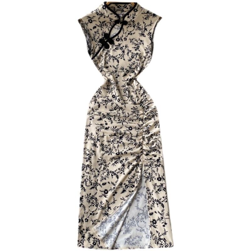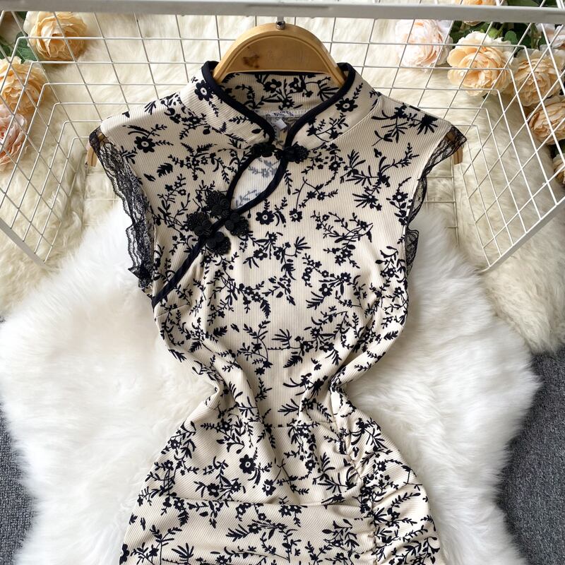 Improved cheongsam young retro disc buckle stand collar slim dress women's high waist slit sexy bag hip midi skirt ハイウェスト レトロ スカート スリム lyxaj83063568844