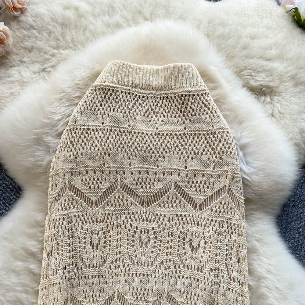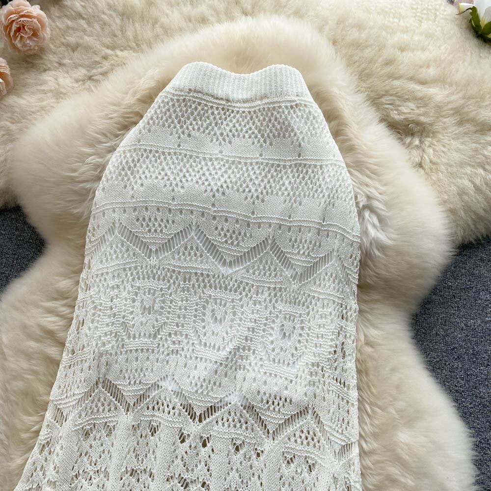 Gentle wind, noble and elegant temperament, lady's long skirt, high waist, thin hollow design, super fairy fishtail skirt ハイウェスト ロング エレガント スカート lyxaj54213919250