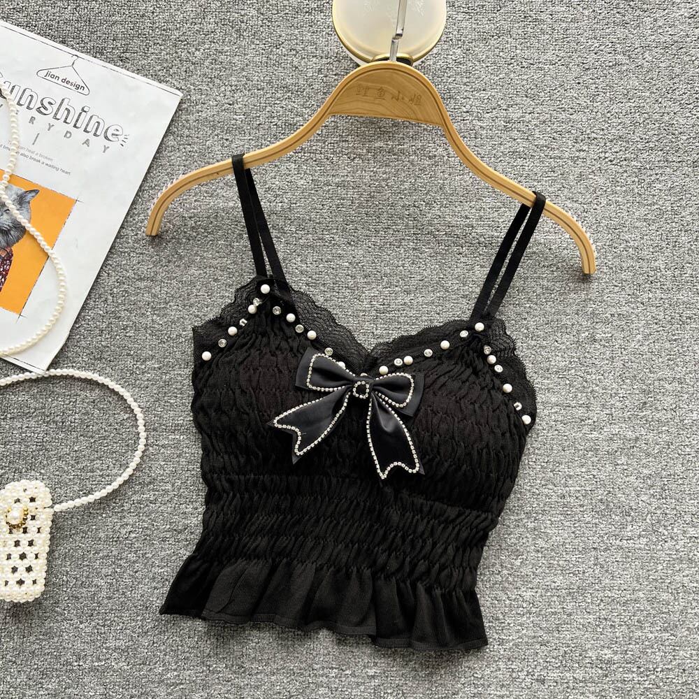 Cute bow pure desire lace three-dimensional with chest pad short small sling fairy vest with tube top top trendy ショート リボン レース 大人ガーリー スウィート キュート カジュアル ピュア lyxaj27077490497
