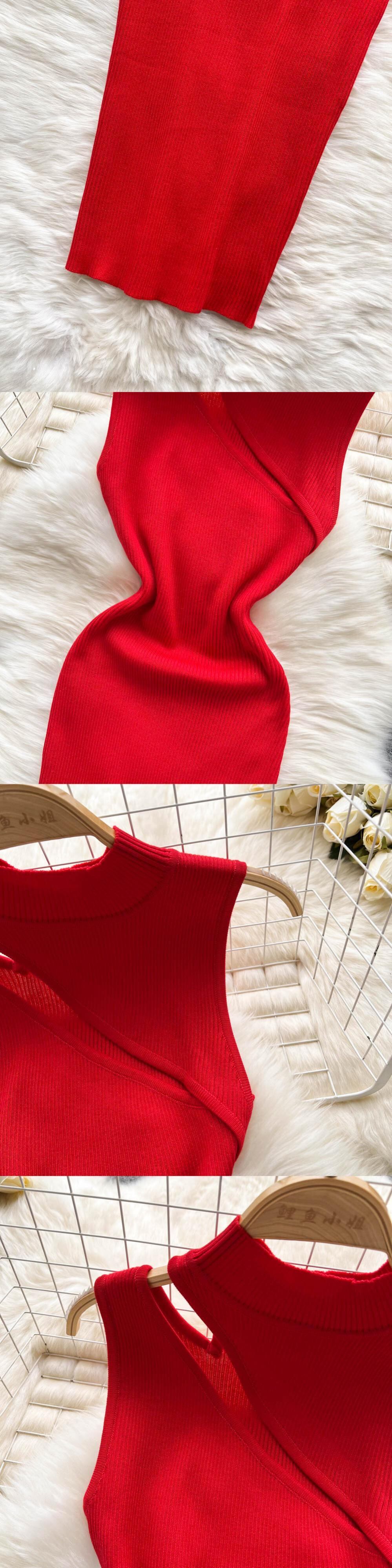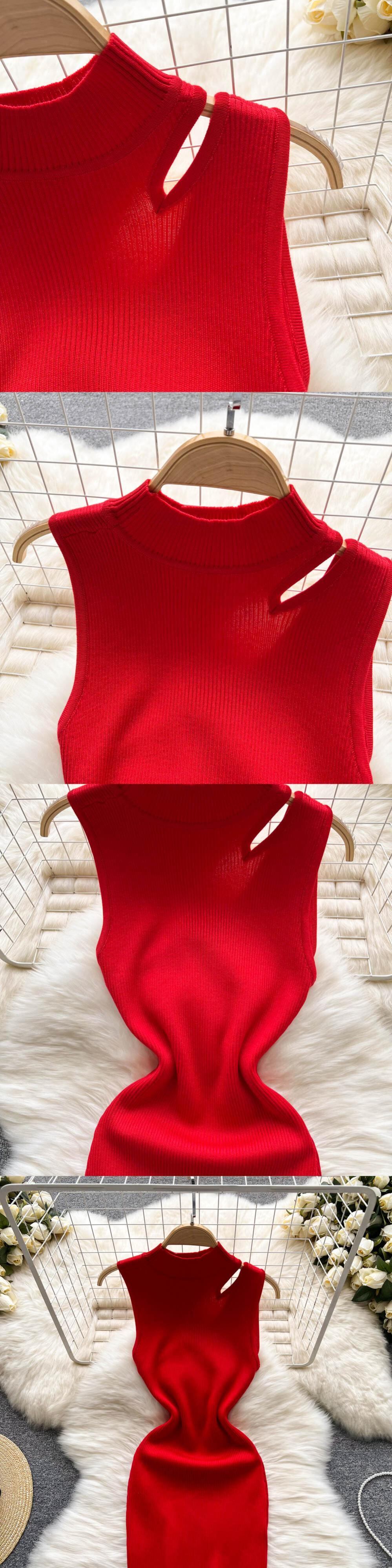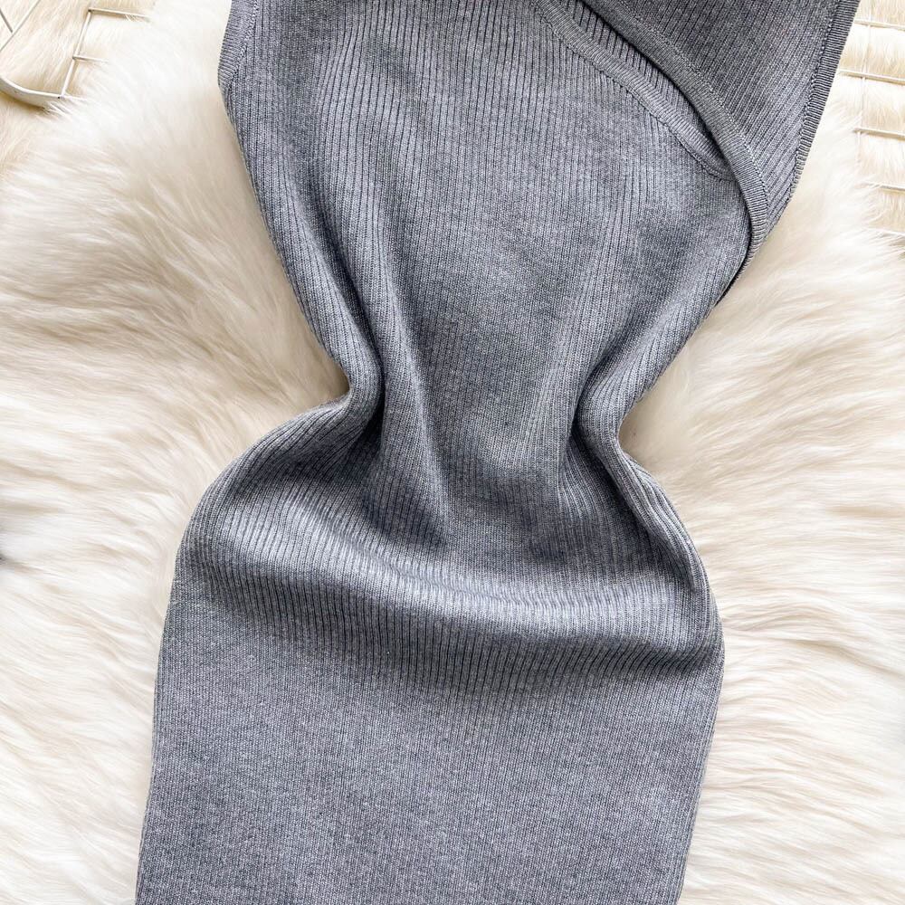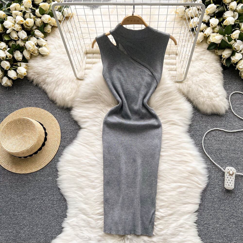 Celebrity temperament stand-up collar stretch knit dress summer new sexy hollowed out slim fit slim bag hip midi skirt サマー 夏物 スカート スリム lyxaj9742748225