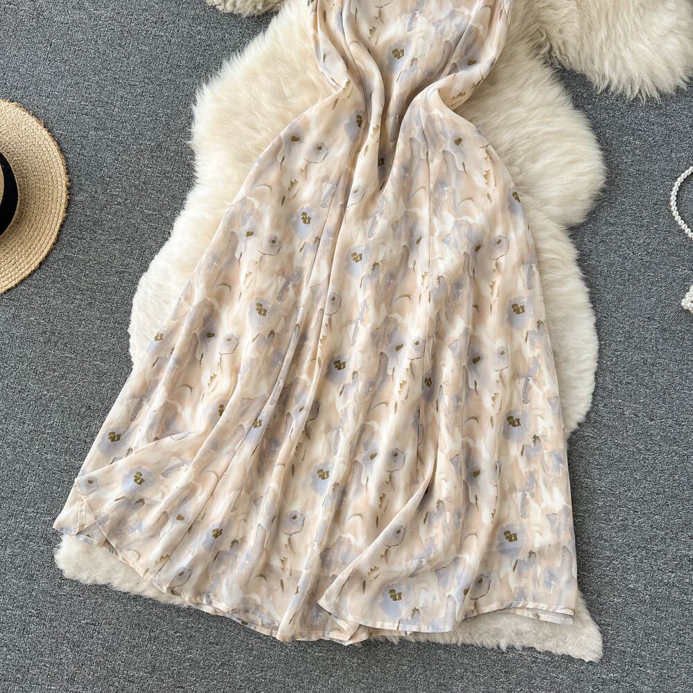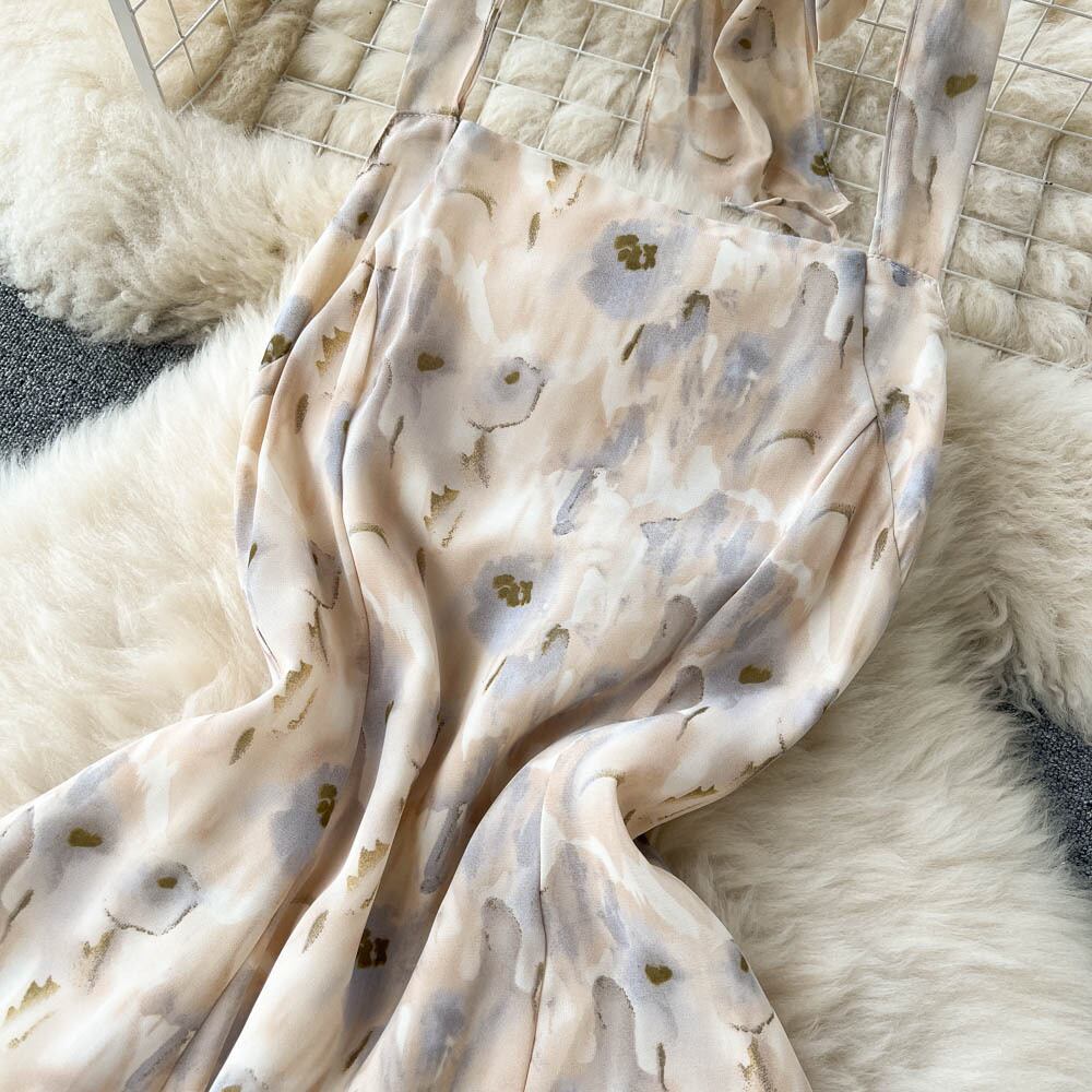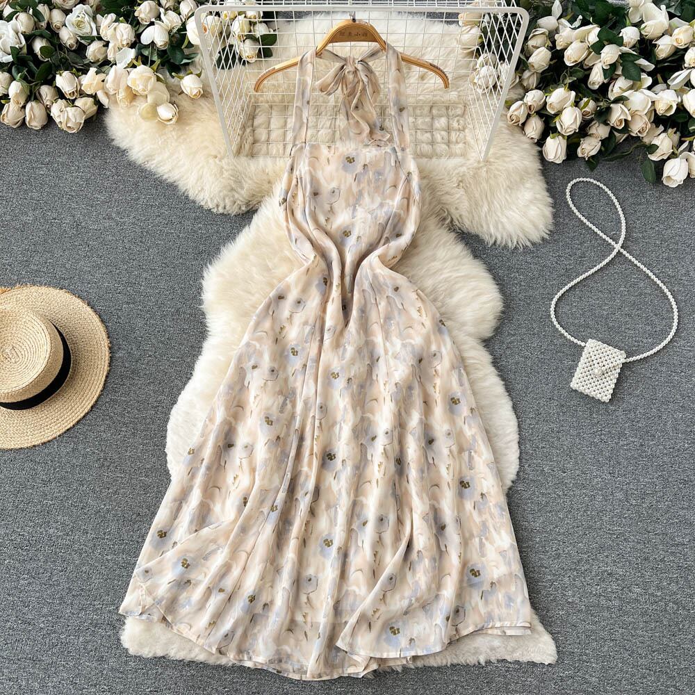 Gentle wind floral French long elegant first love halter neck beautiful back dress female summer waist long skirt ロング エレガント サマー 夏物 花柄 スカート lyxaj62707577566