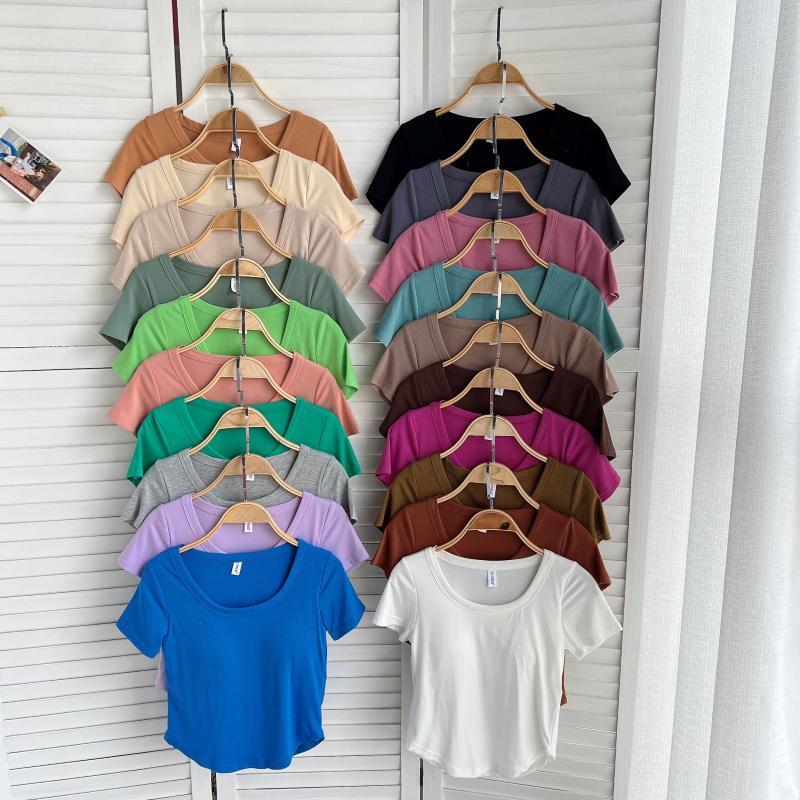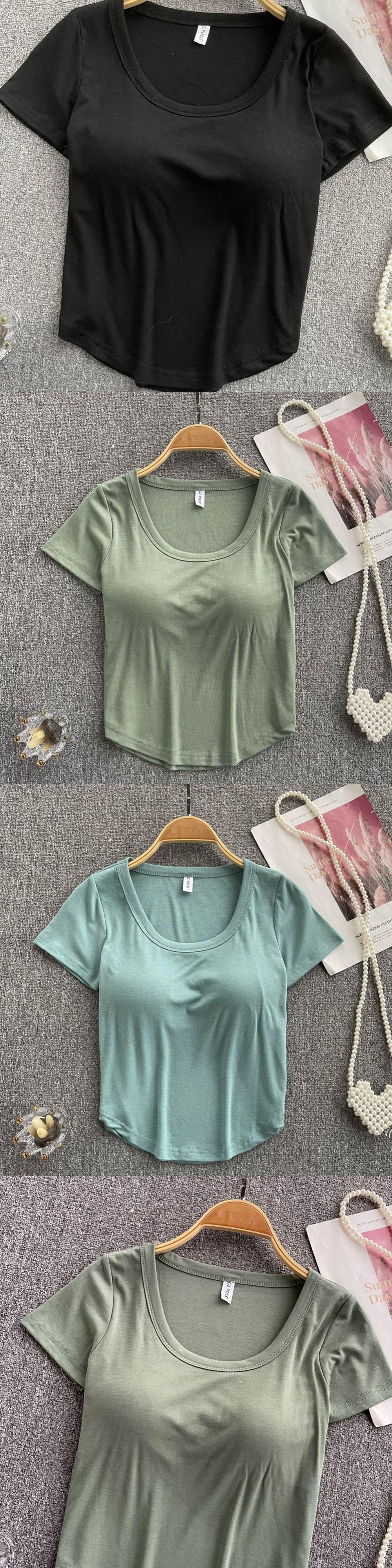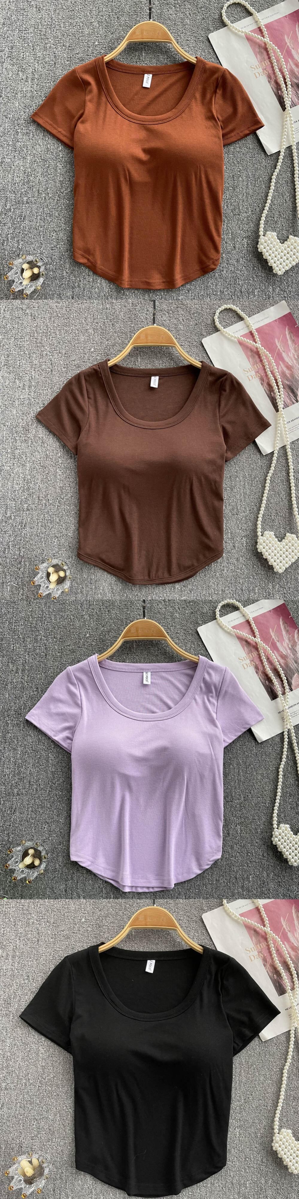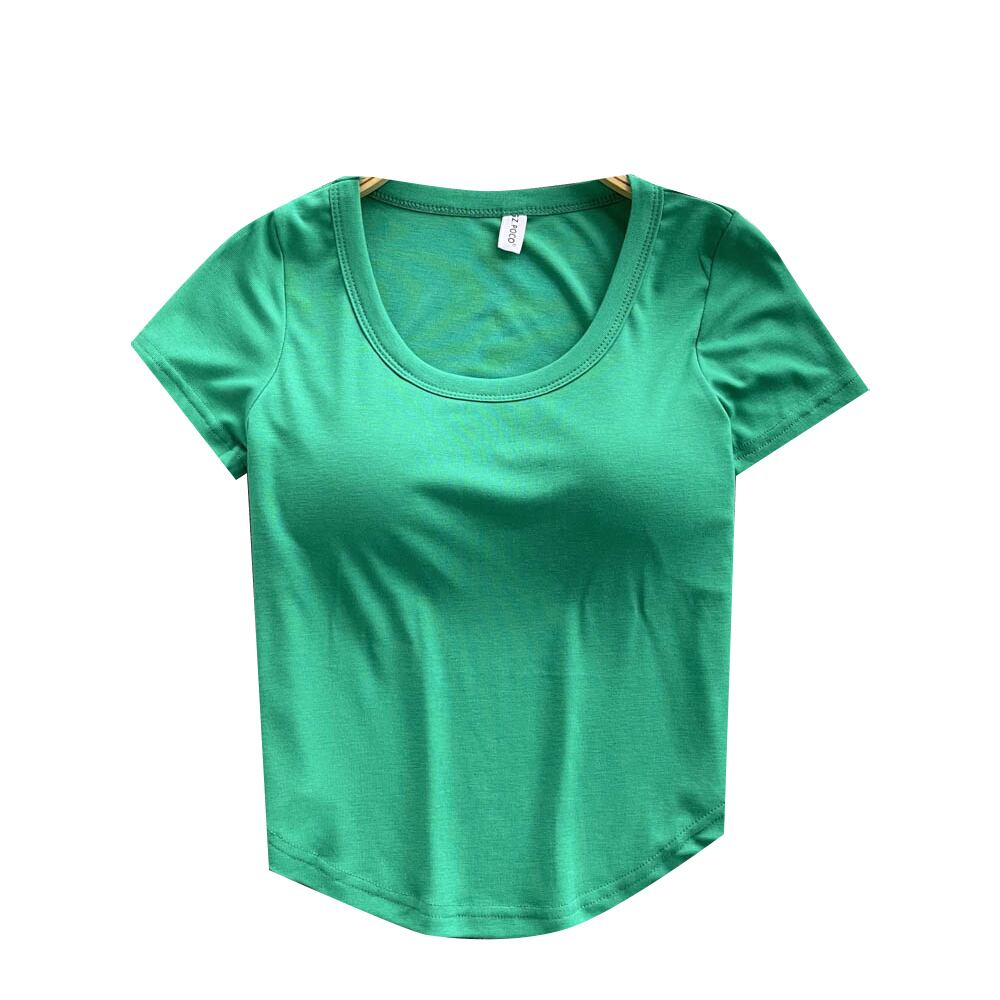 With bra pads and cups all in one without steel ring short-sleeved T-shirt women's 2022 summer new self-cultivation high waist crop top trendy ハイウェスト サマー 夏物 Tシャツ リング 指輪 lyxaj160352098