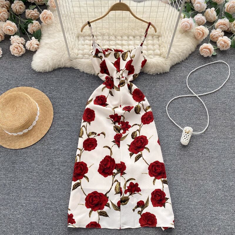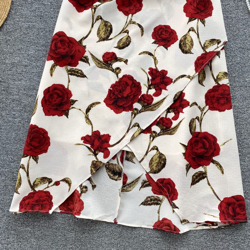 French floral sleeveless dress high-quality retro rose suspender skirt women's summer temperament waist tea break long skirt ロング レトロ サマー 夏物 ノースリーブ 花柄 スカート lyxaj43930513277