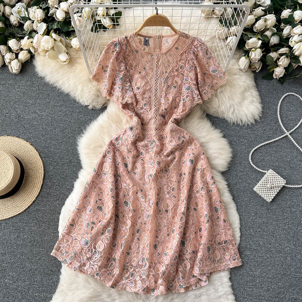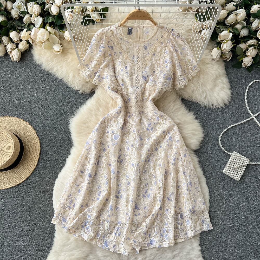 Gentle wind noble and elegant lady A-line skirt 2022 summer new super fairy waist lace dress レース エレガント サマー 夏物 スカート Aライン lyxaj94946711174