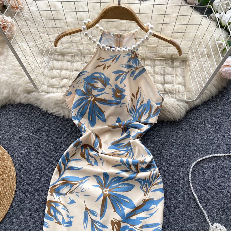 Celebrity light familiar style high-end pearl hanging neck light luxury slim bag hip slim dress female sexy split long skirt ロング スリムヒップ スカート スリム パール 真珠 lyxaj53881434674