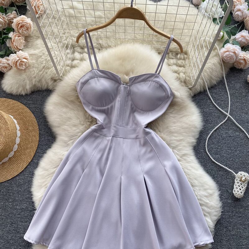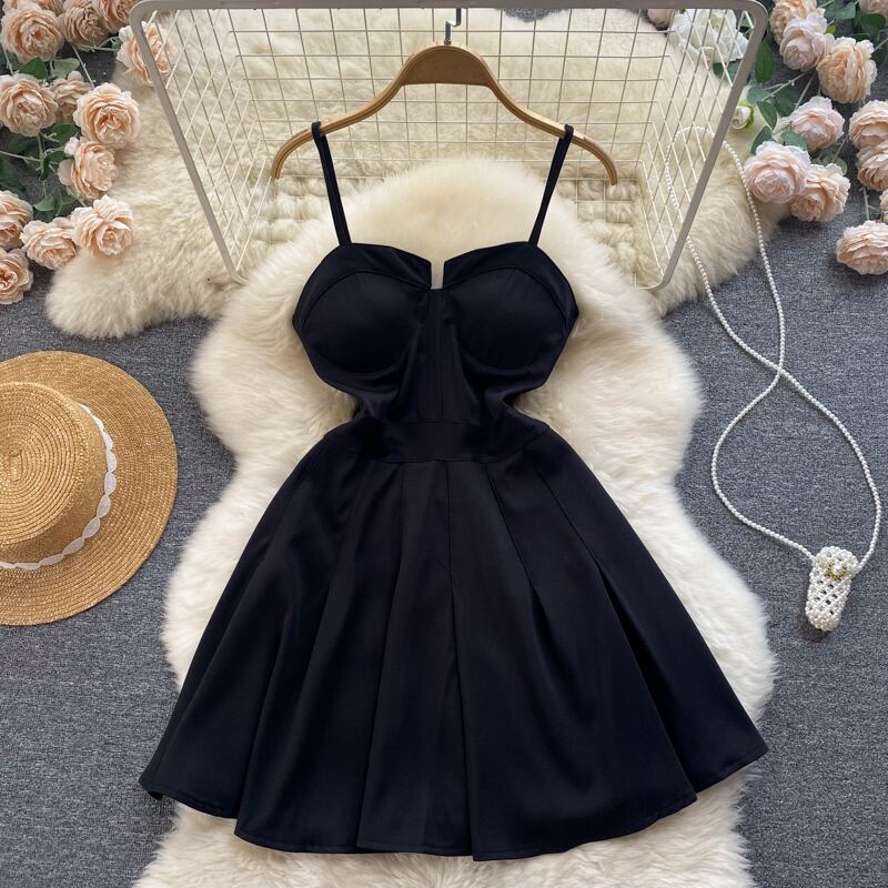 Sweet and spicy fried street sexy tube top backless suspender short skirt high waist slim sleeveless A-line dress small man ハイウェスト ショート ストリート 大人ガーリー スウィート キュート カジュアル ノースリーブ スカート Aライン スリム lyxaj41850953070