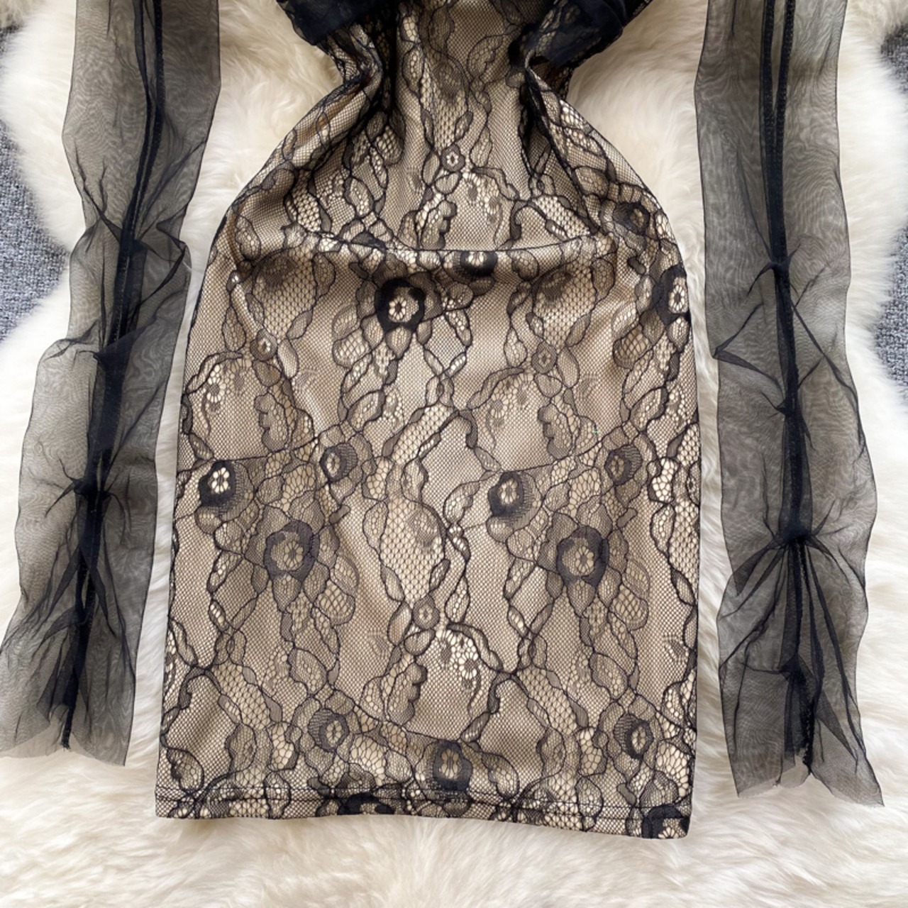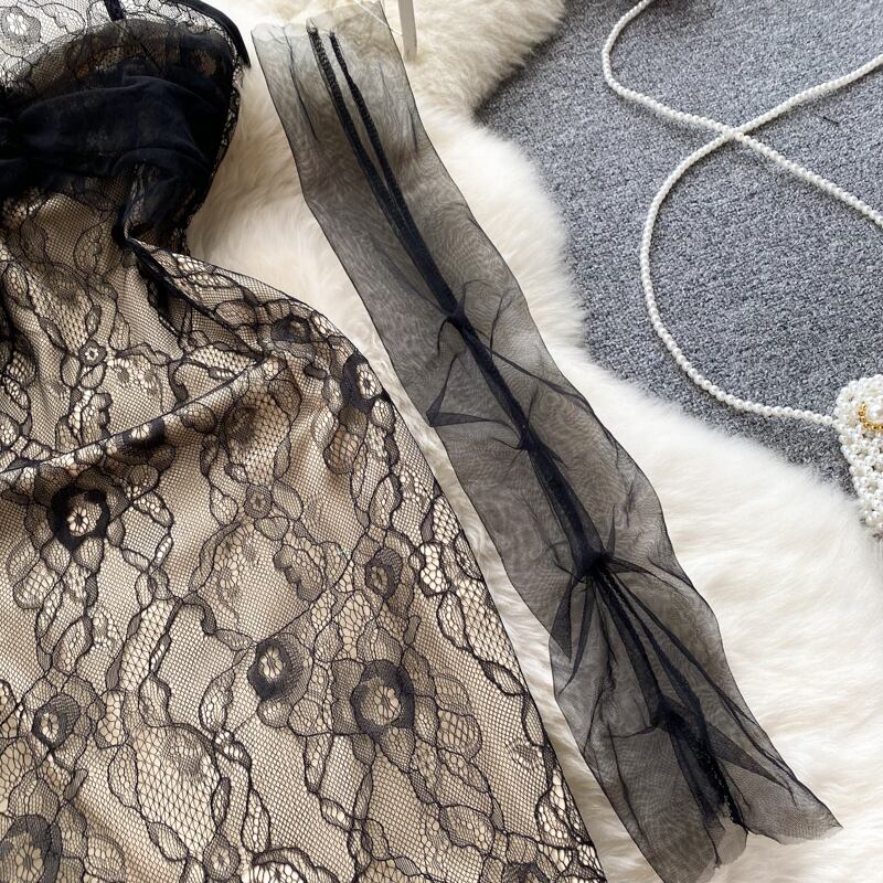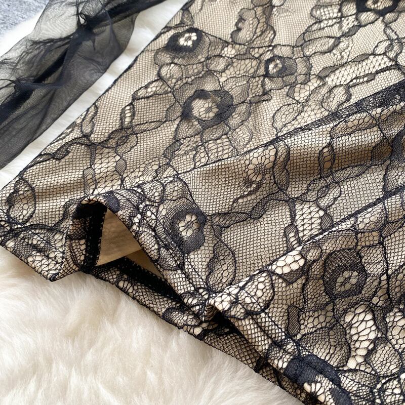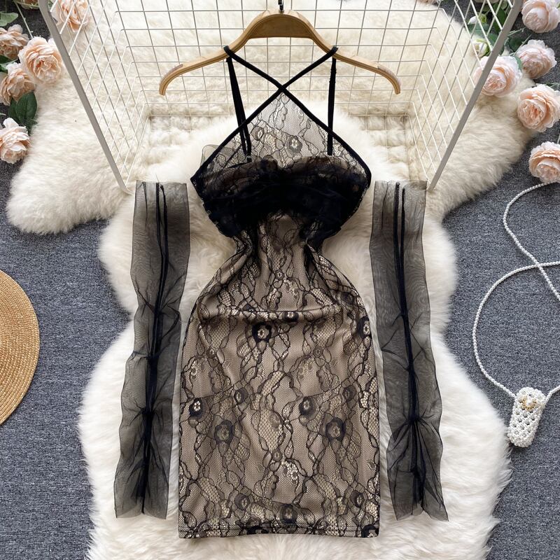 Mesh long-sleeved tube top suspender dress female pure desire style sexy tight-fitting thin super fairy temperament package hip skirt ロング メッシュ スカート ピュア lyxaj16457400035