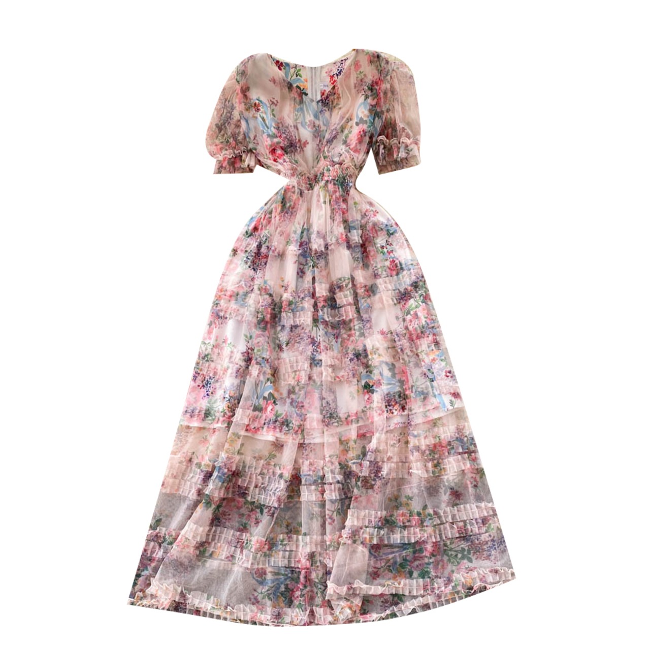 2022 new fairy skirt sweet first love super fairy French long dress mesh floral skirt summer princess dress ロング 大人ガーリー スウィート キュート カジュアル サマー 夏物 メッシュ 花柄 スカート lyxaj43010486149