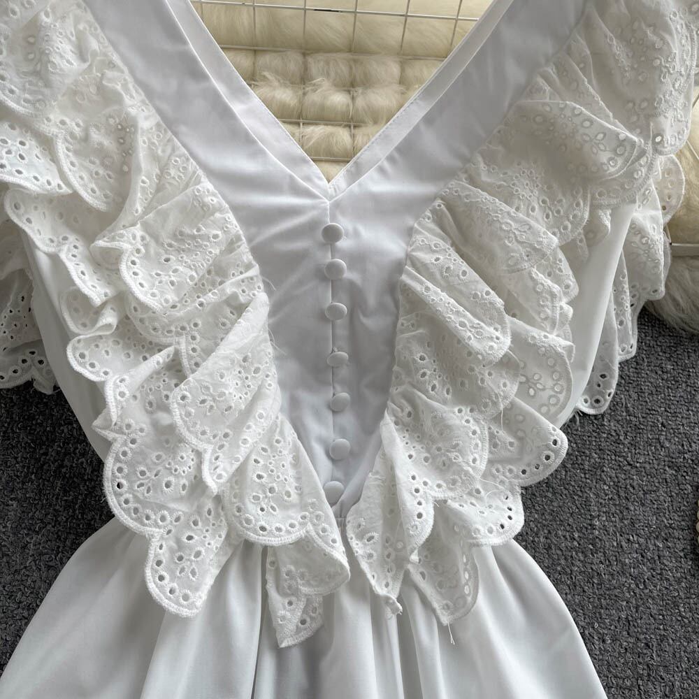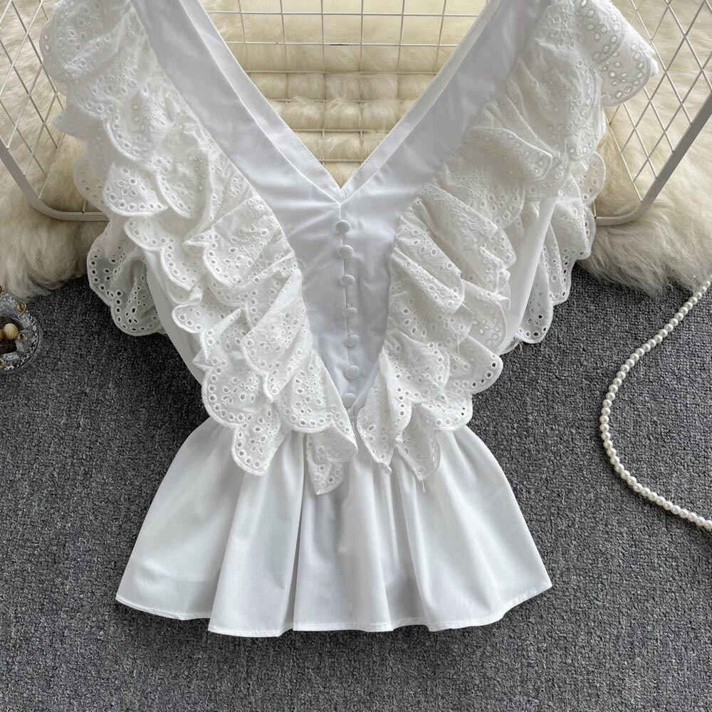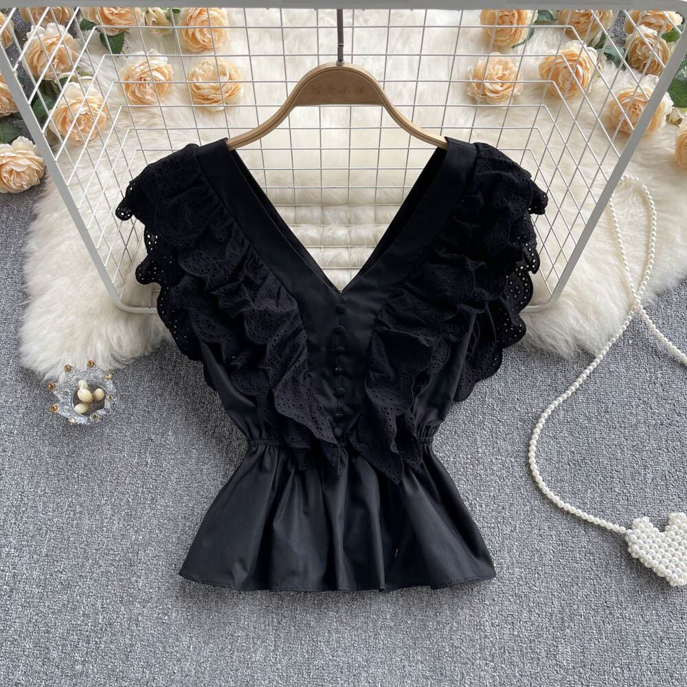 2022 summer dress new temperament V-neck double-layer ruffles waist slimming sleeveless pullover shirt women's slim all-match フリル ラッフル サマー 夏物 ノースリーブ Vネック スリム lyxaj63442885872