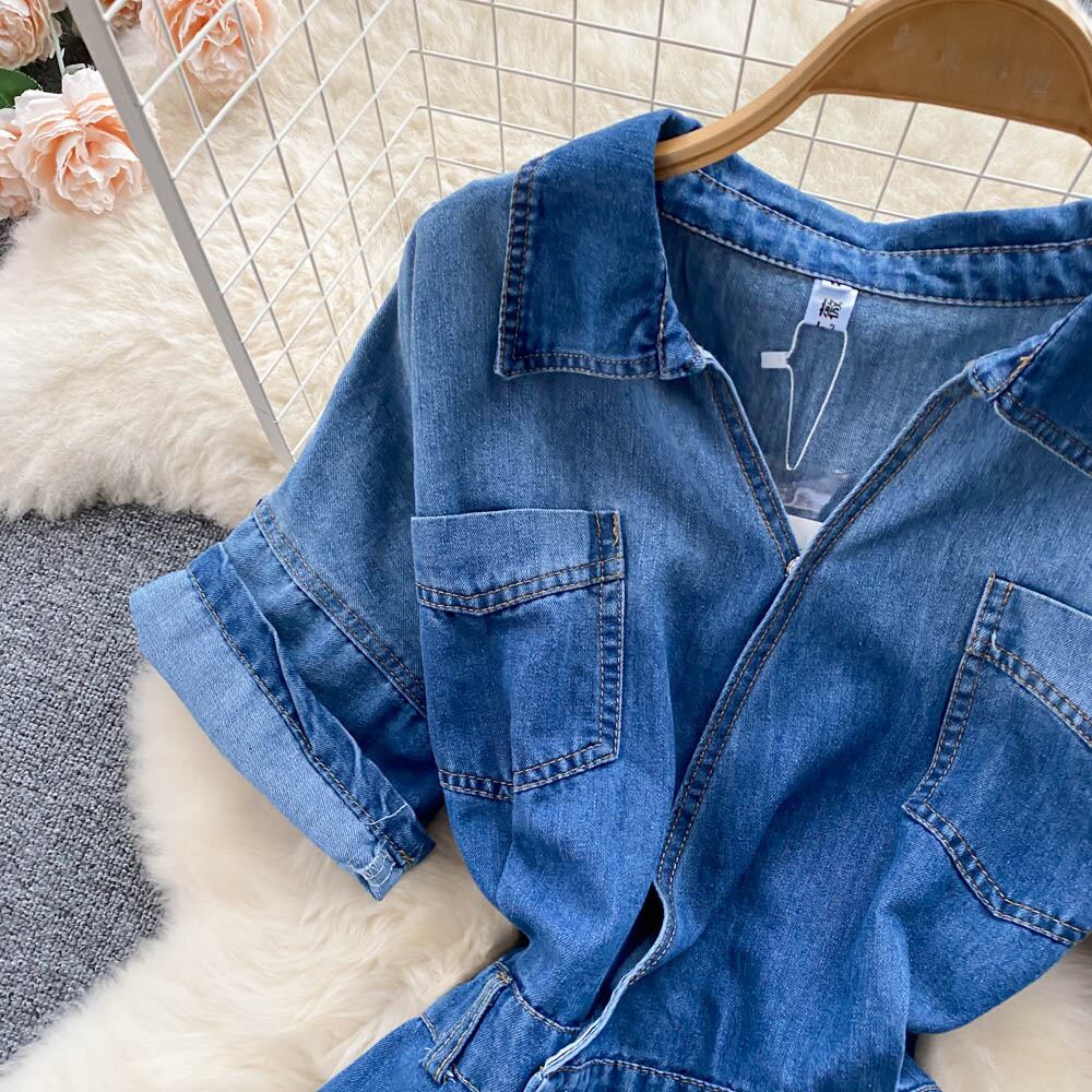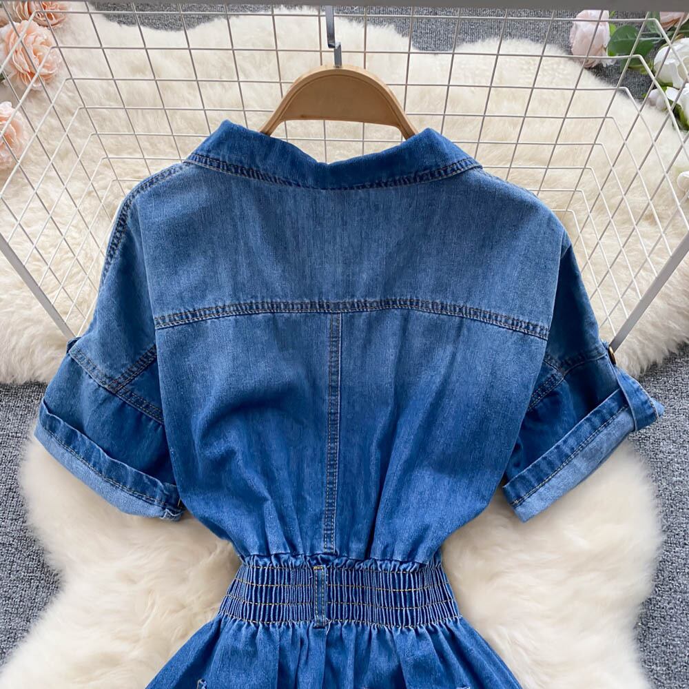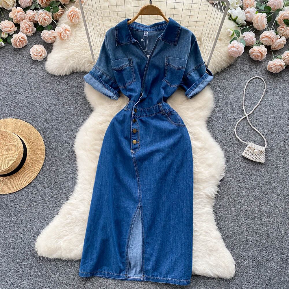 chic Hong Kong style retro denim skirt niche design slanted open buttoned slim fit mid-length temperament dress レトロ スカート スリム lyxaj77844895942