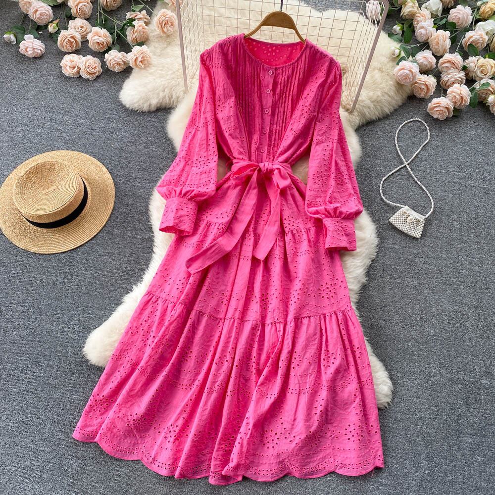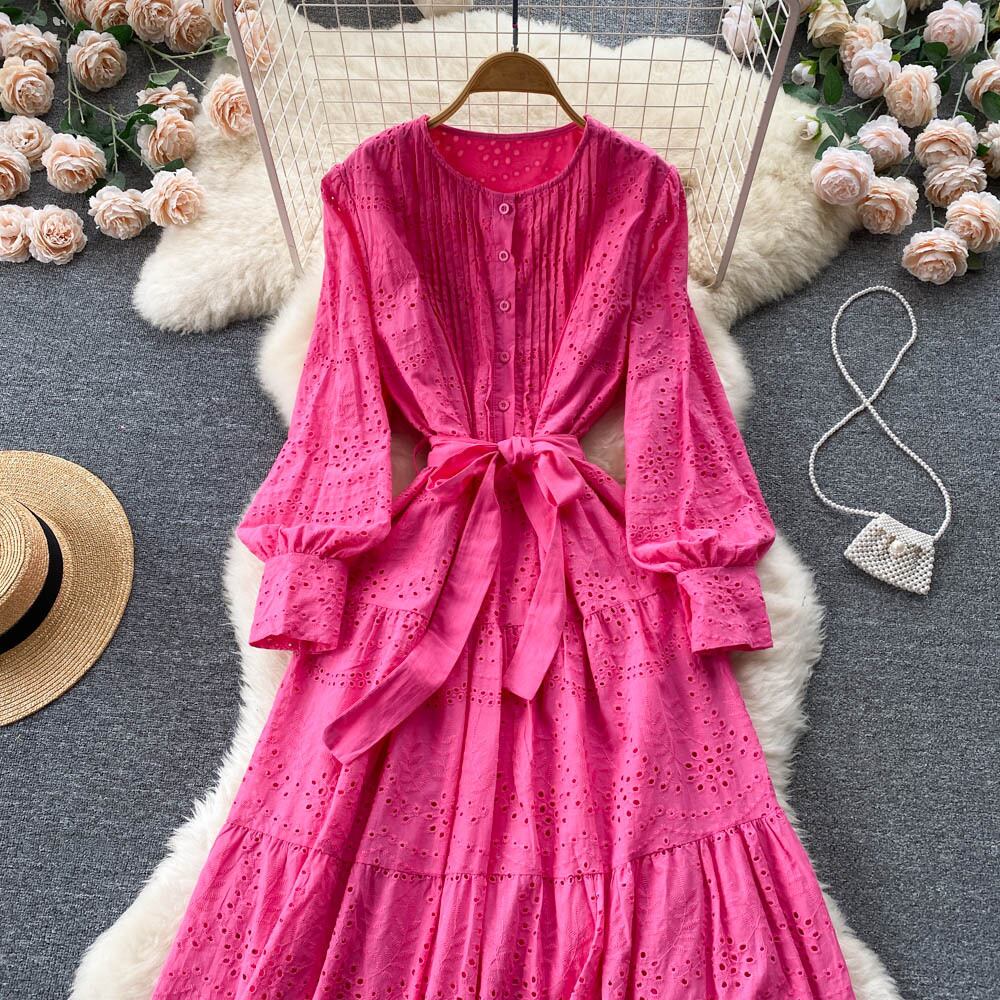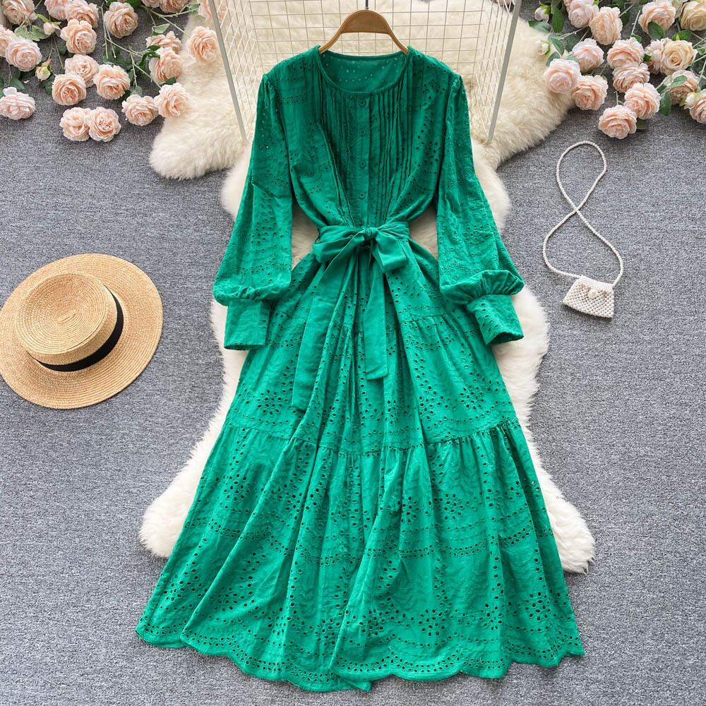 Gentle wind elegant temperament lady A-line skirt 2022 spring and autumn new style lace waist show thin hollow large swing long skirt ロング レース エレガント スプリング 春物 オータム 秋物 スカート Aライン lyxaj6301943723