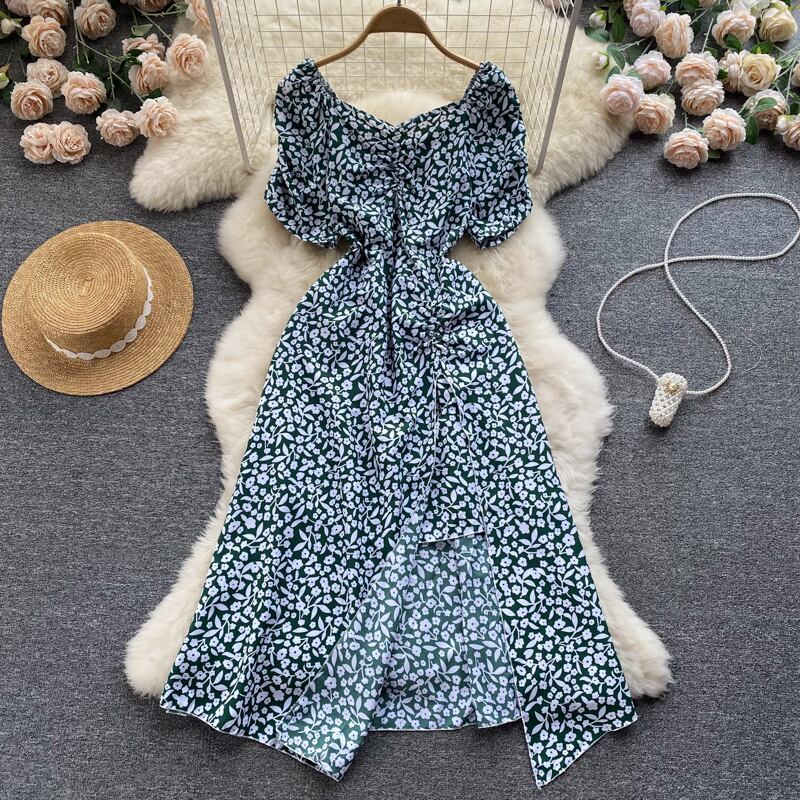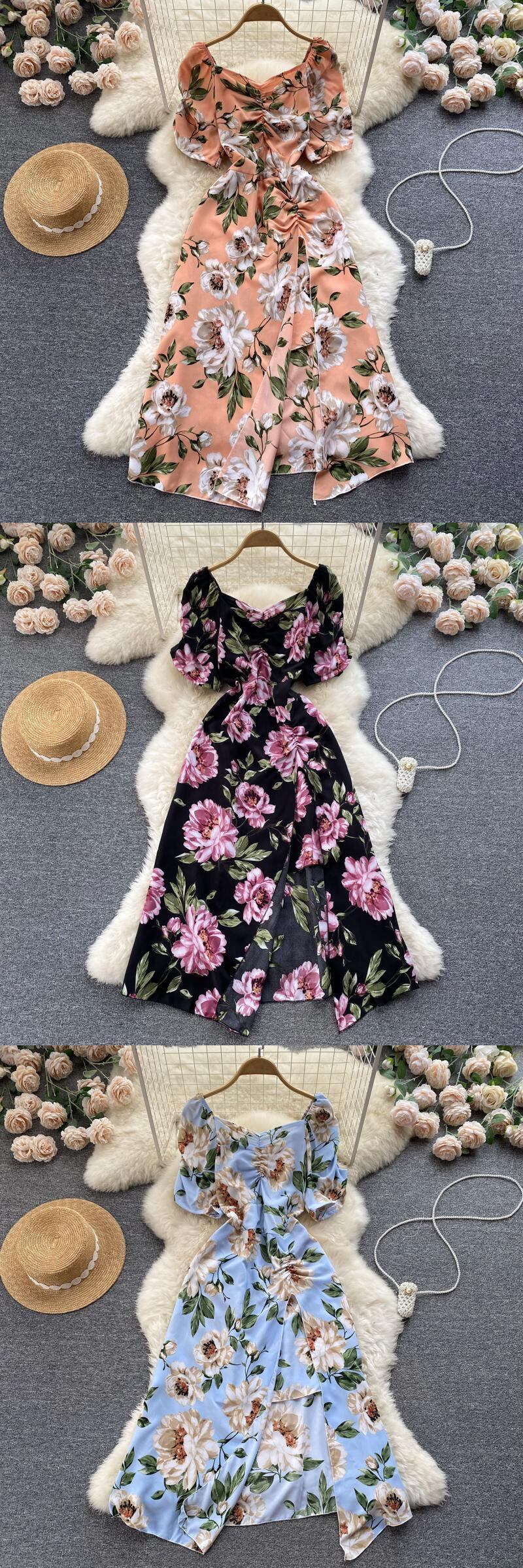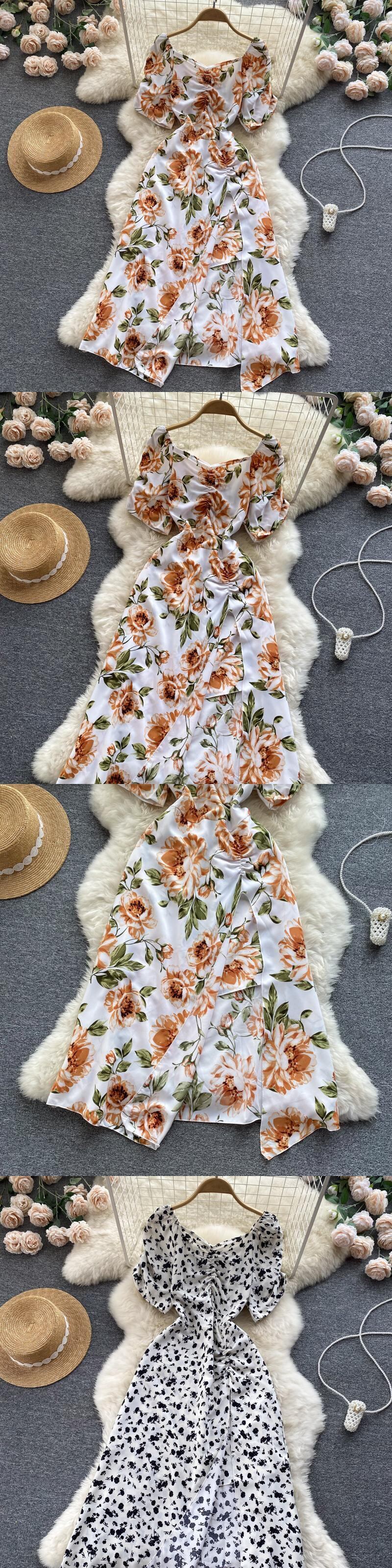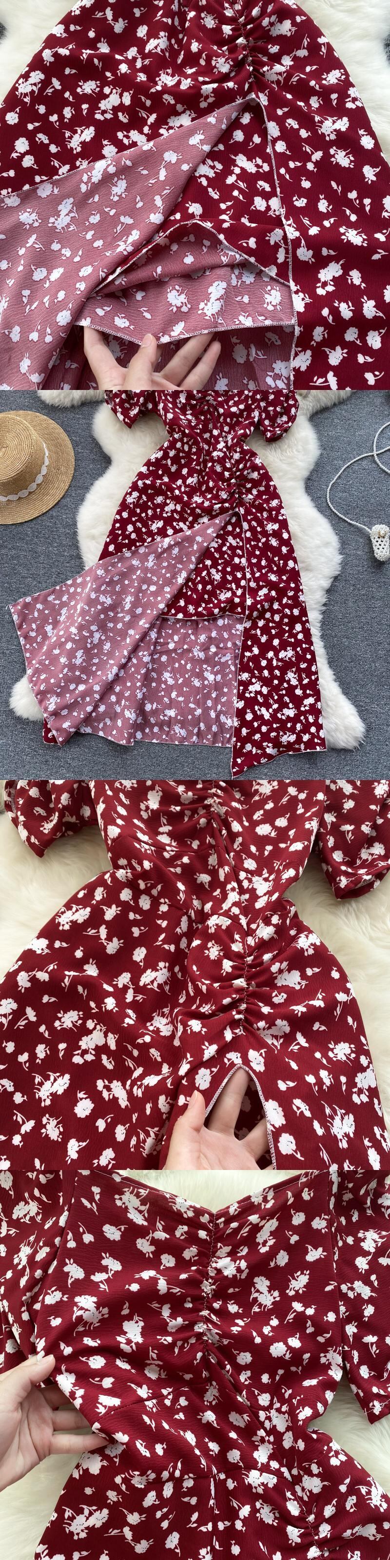 French Tea Break Floral Dress Women's Summer 2022 Waist Thin Temperament Slit Large Swing Long Skirt ロング サマー 夏物 花柄 スカート lyxaj82159785304
