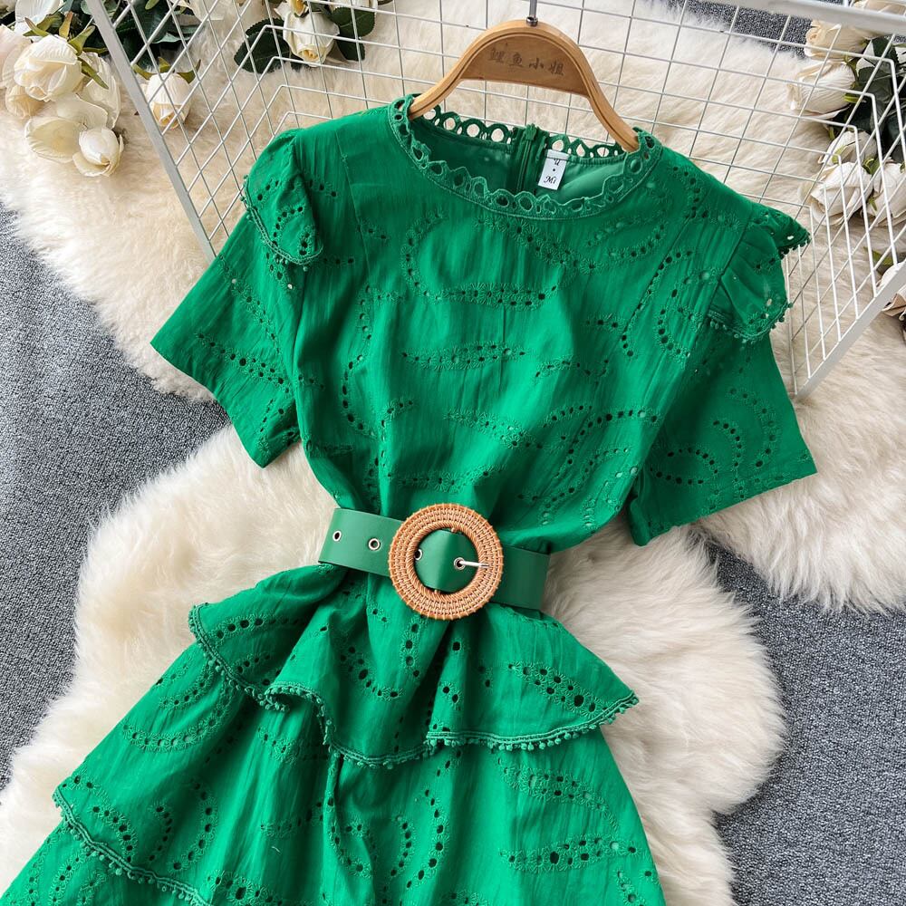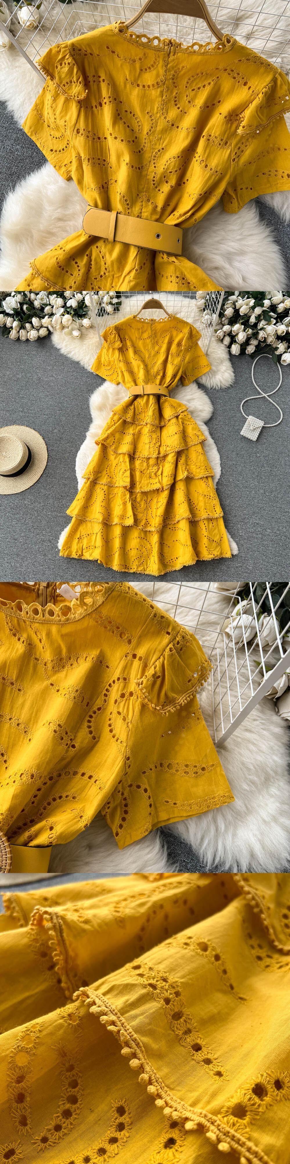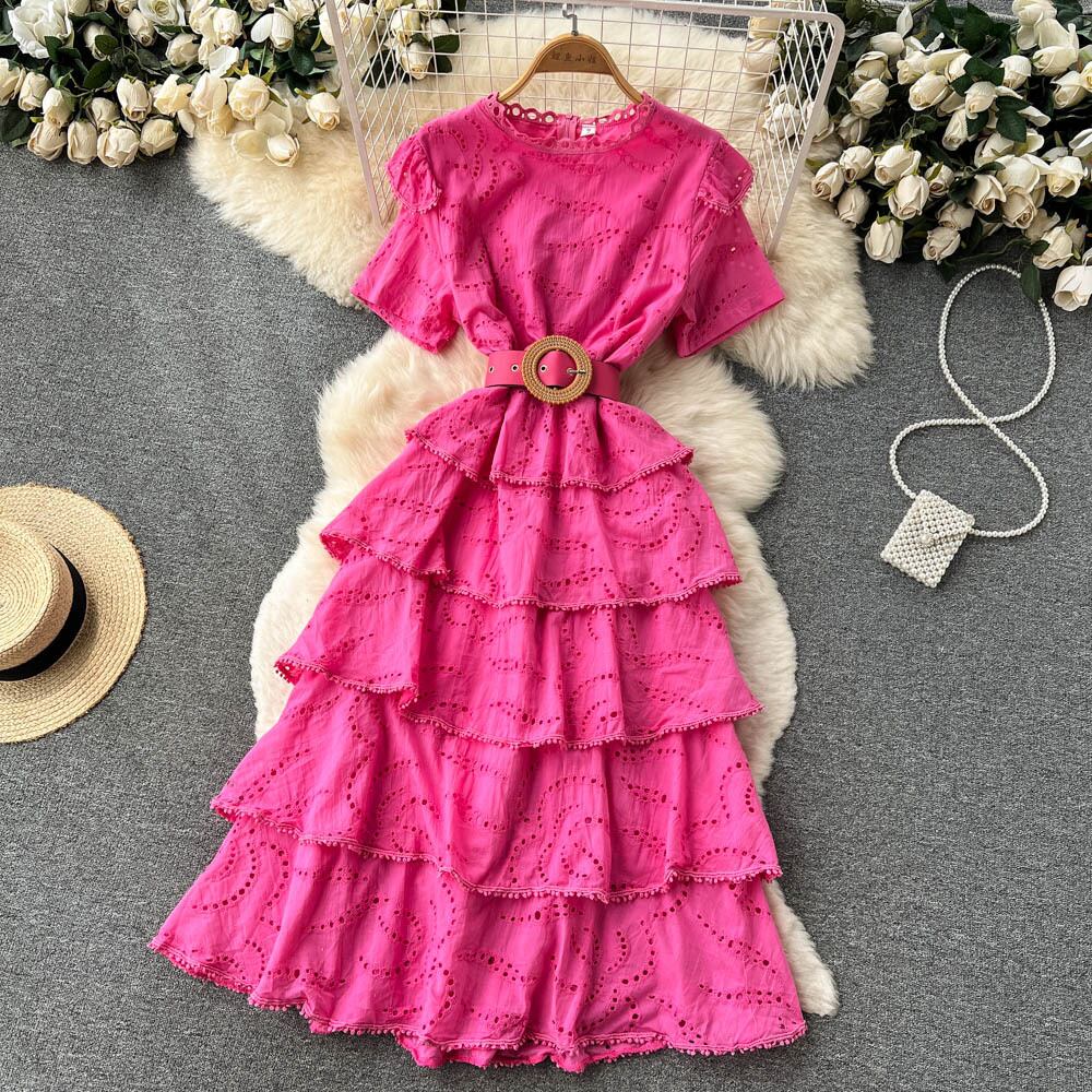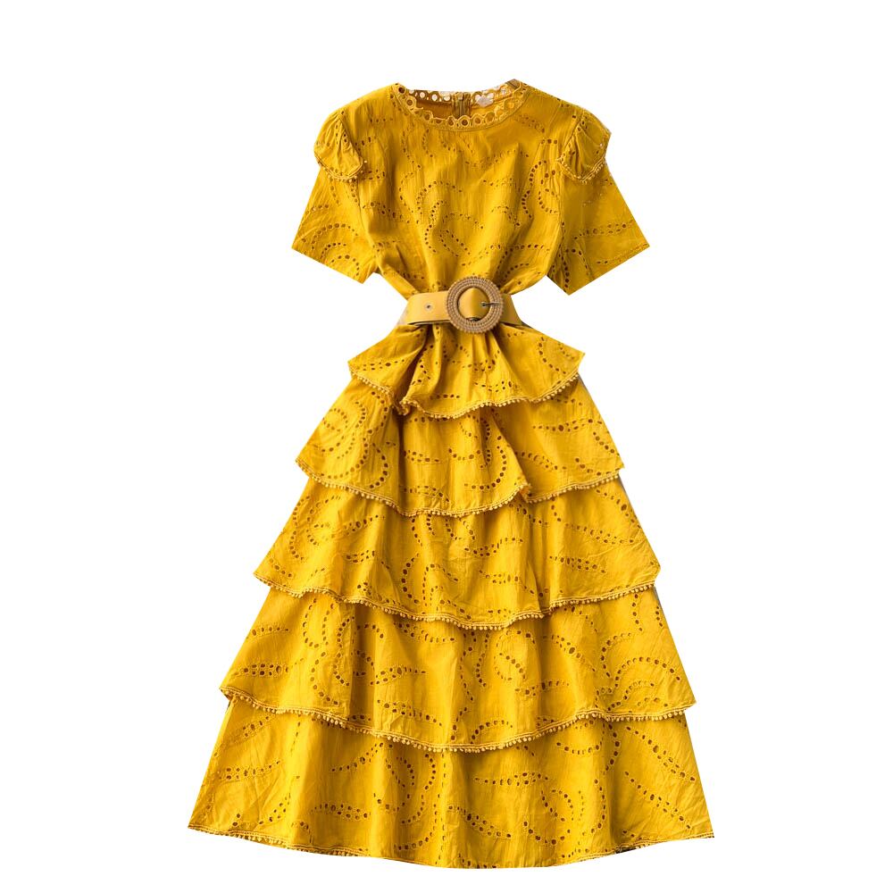 Retro literary design sense hollow air quality tea break skirt gentle long fairy cake skirt super fairy waist dress ロング レトロ スカート lyxaj93047044878
