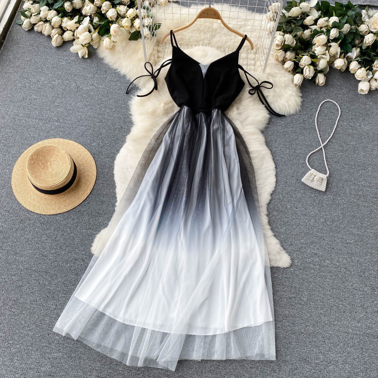 Gradient dream ladies knee-length skirt women's summer new sexy red suspender dress evening dress skirt レッド サマー 夏物 スカート lyxaj75597809528