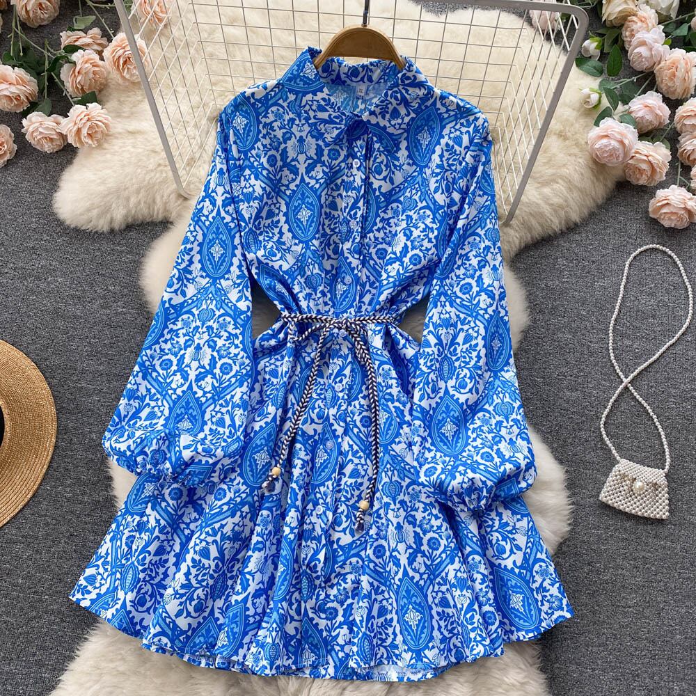 Cold and high-end temperament ladies dress women's spring and autumn new waist tie show thin lantern long-sleeved A-line skirt ロング スプリング 春物 オータム 秋物 スカート Aライン lyxaj84834272043