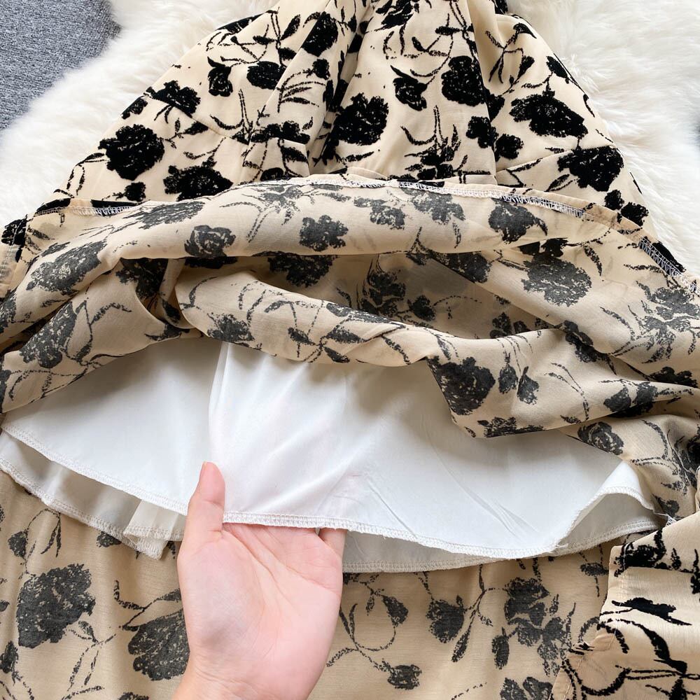 2022 new chic retro dress summer high-end printing waist slim temperament square neck suspender A-line skirt レトロ サマー 夏物 スカート Aライン スリム スクウェア lyxaj86065015018