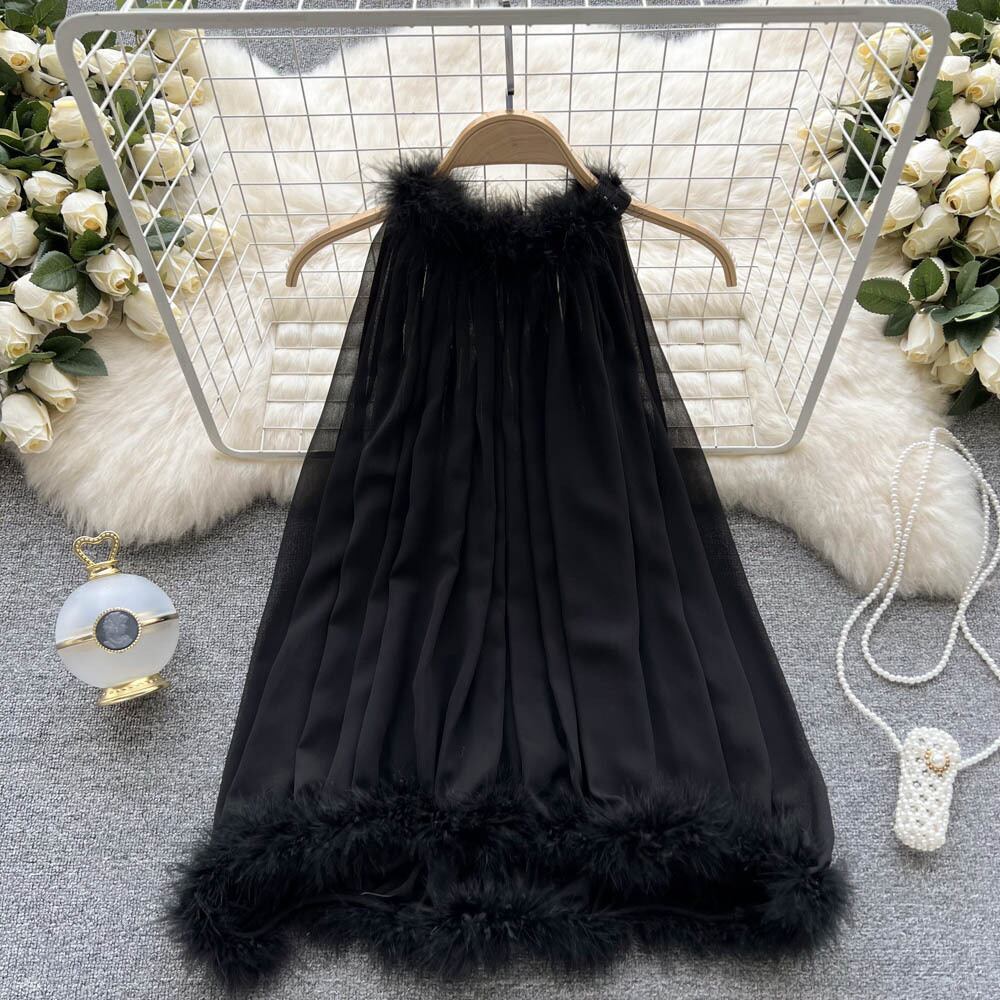 2022 summer new design sense Hepburn style temperament thin hanging neck design sense tube top little black dress women ブラック サマー 夏物 lyxaj66721390089