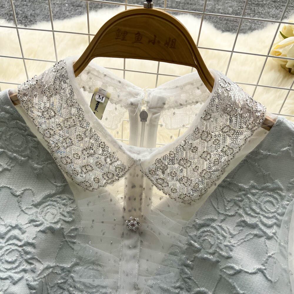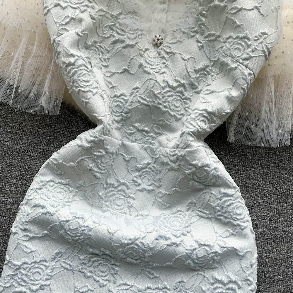 French niche shirt collar stitching mesh sweet temperament dress women's slim fit and slim retro jacquard hip skirt レトロ 大人ガーリー スウィート キュート カジュアル メッシュ スカート スリム ステッチ lyxaj66314731922