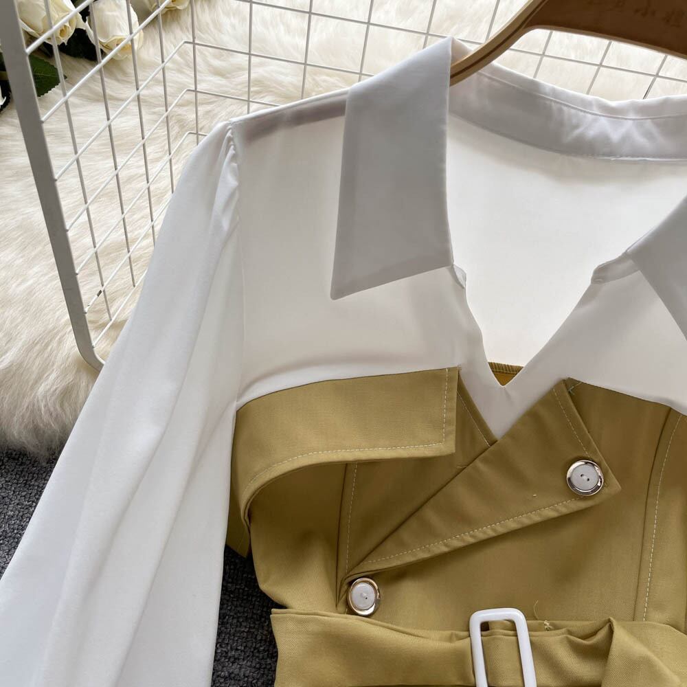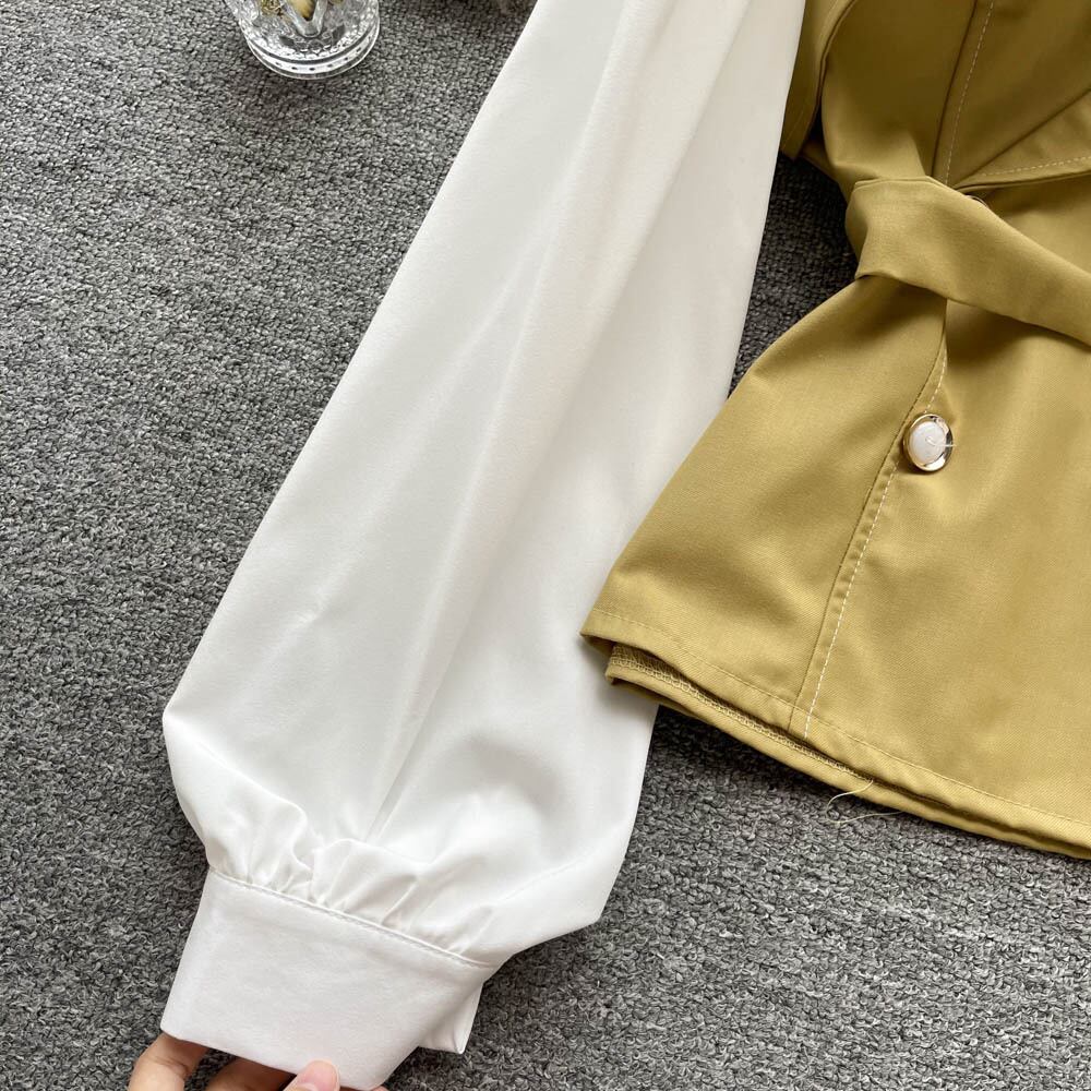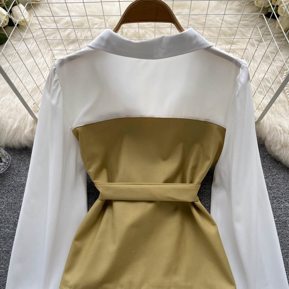 上質なニッチなデザイン感の配色長袖シャツ トップス 秋 レディース 韓国版 洋風 シック 小さめシャツ フレンチシャツ ロング オータム 秋物 lyxaj36586094398