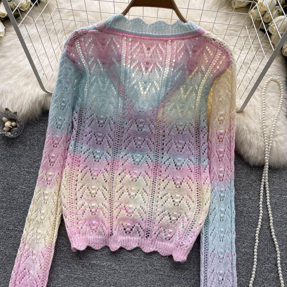 フレンチスウィートなデザインセンスマイノリティカラーVネックセーターカーディガンコートレディース秋長袖ニットセータートップス ロング 大人ガーリー キュート カジュアル オータム 秋物 lyxaj31751383437
