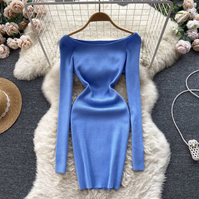 純粋な欲望のスタイルのデザインセンスのニッチなスキーム中空長袖ドレス秋の新しいウエストニットヒップスカート ロング オータム 秋物 lyxaj34548261253