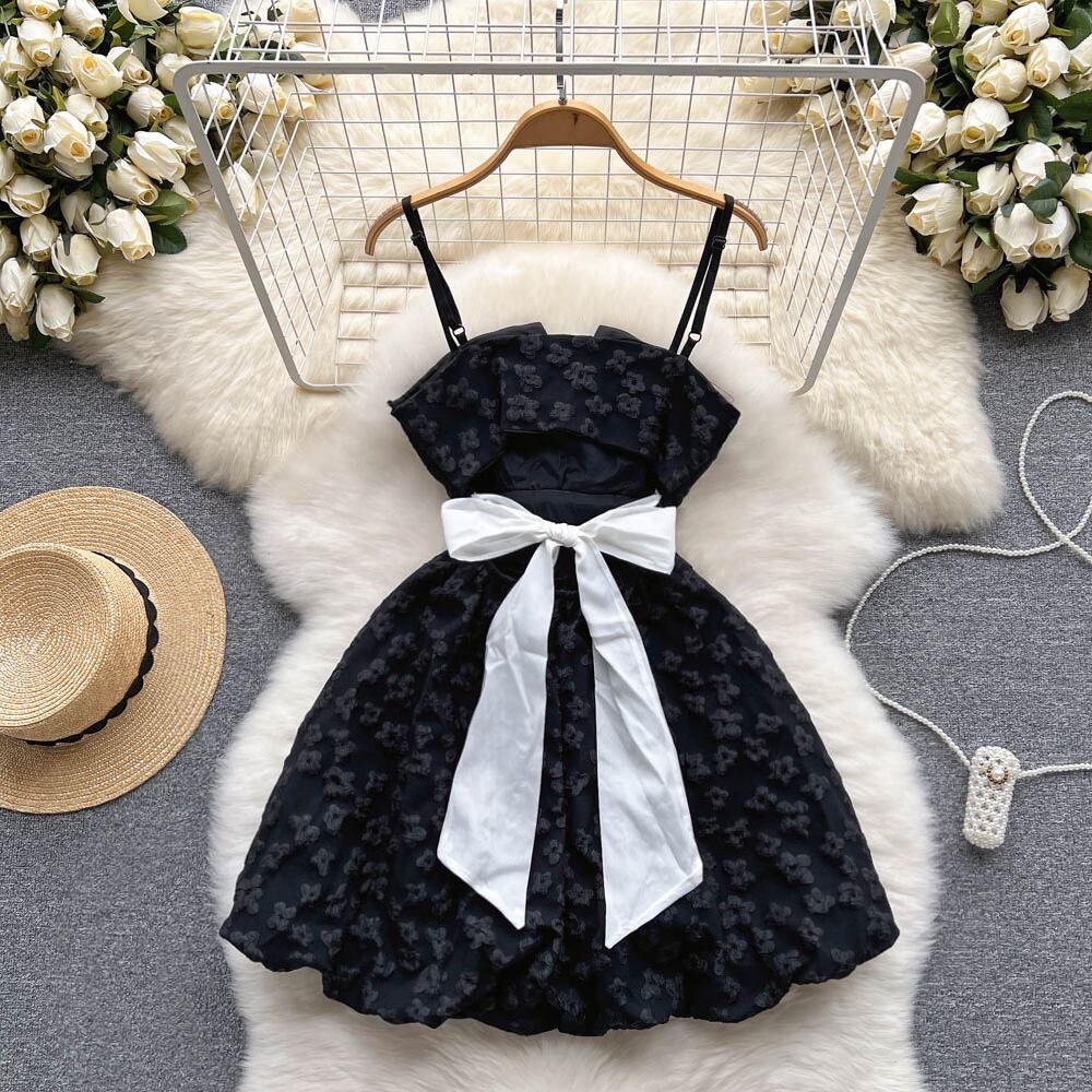 高品質のホットな女の子の腰と薄いサスペンダー ドレス夏の女性のヘップバーン スタイル フック フラワー シックな気質リトル ブラック ドレス サマー 夏物 フラワーデザイン lyxaj65461137421