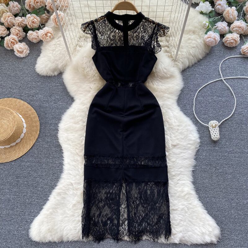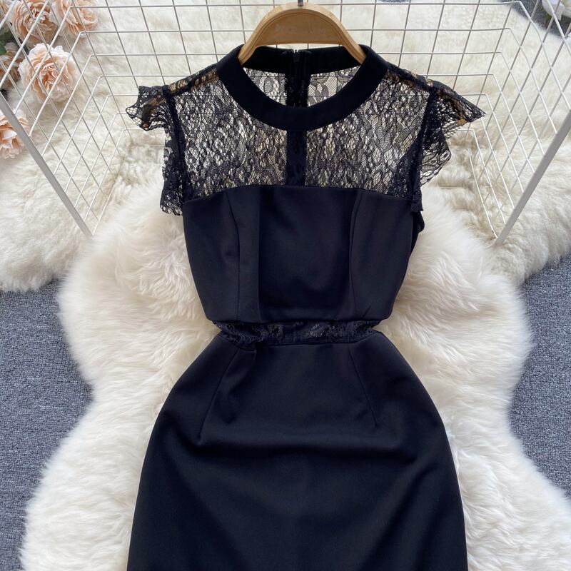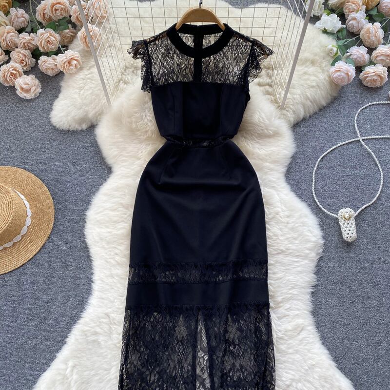 上質な軽やかな大人スタイルレースステッチノースリーブワンピース夏らしいスリットウエスト甘辛スカート 大人ガーリー スウィート キュート カジュアル サマー 夏物 lyxaj24953020454