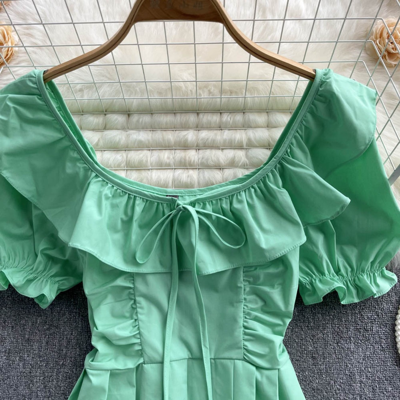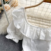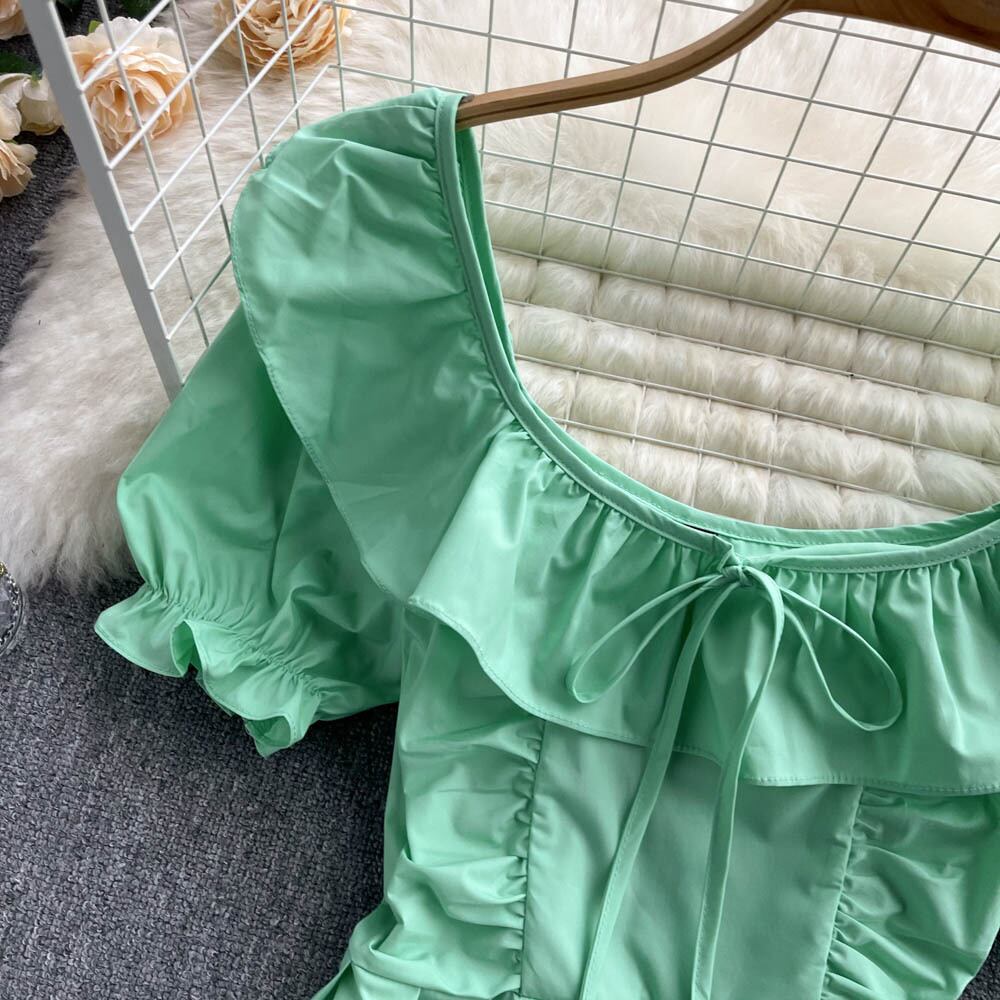 French ruffled square-neck shirt women's design niche summer puff sleeves short corset short-sleeved Western-style top ショート コルセット サマー 夏物 スクウェア lyxaj15629539702