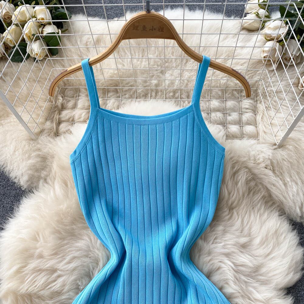 スリムフィット弾性ニットスカートサマードレス新しい無地オールマッチサスペンダースカート気質女性らしさパッケージヒップ底入れドレス エラスティック 伸縮 夏物 ソリッドカラー lyxaj87191305649