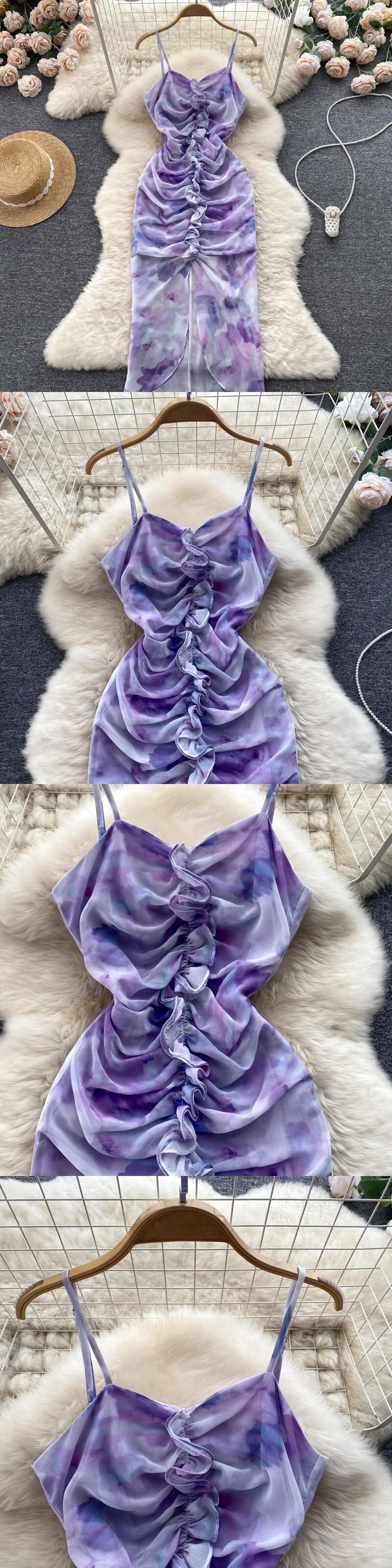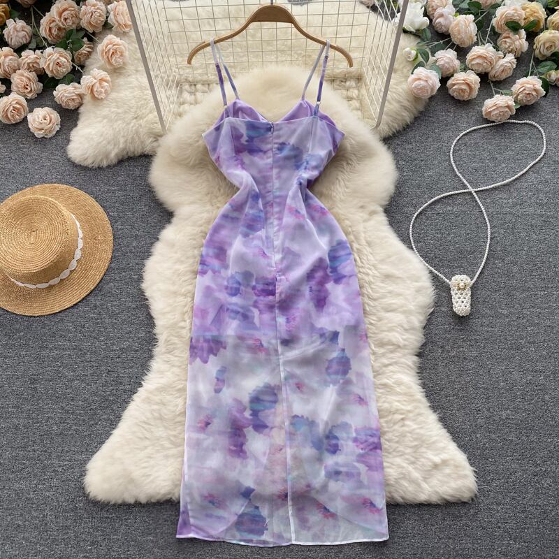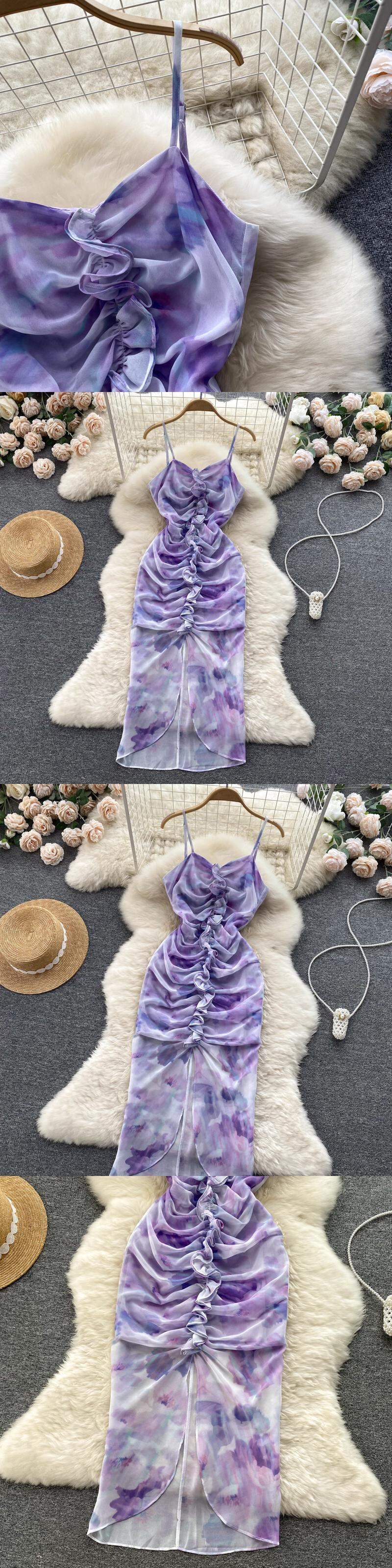 デザインセンスプリーツスプリットピュアデザセクシーシーサイドバケーショントラベルハイエンドシフォンサスペンダードレスロングスカート lyxaj60392200440