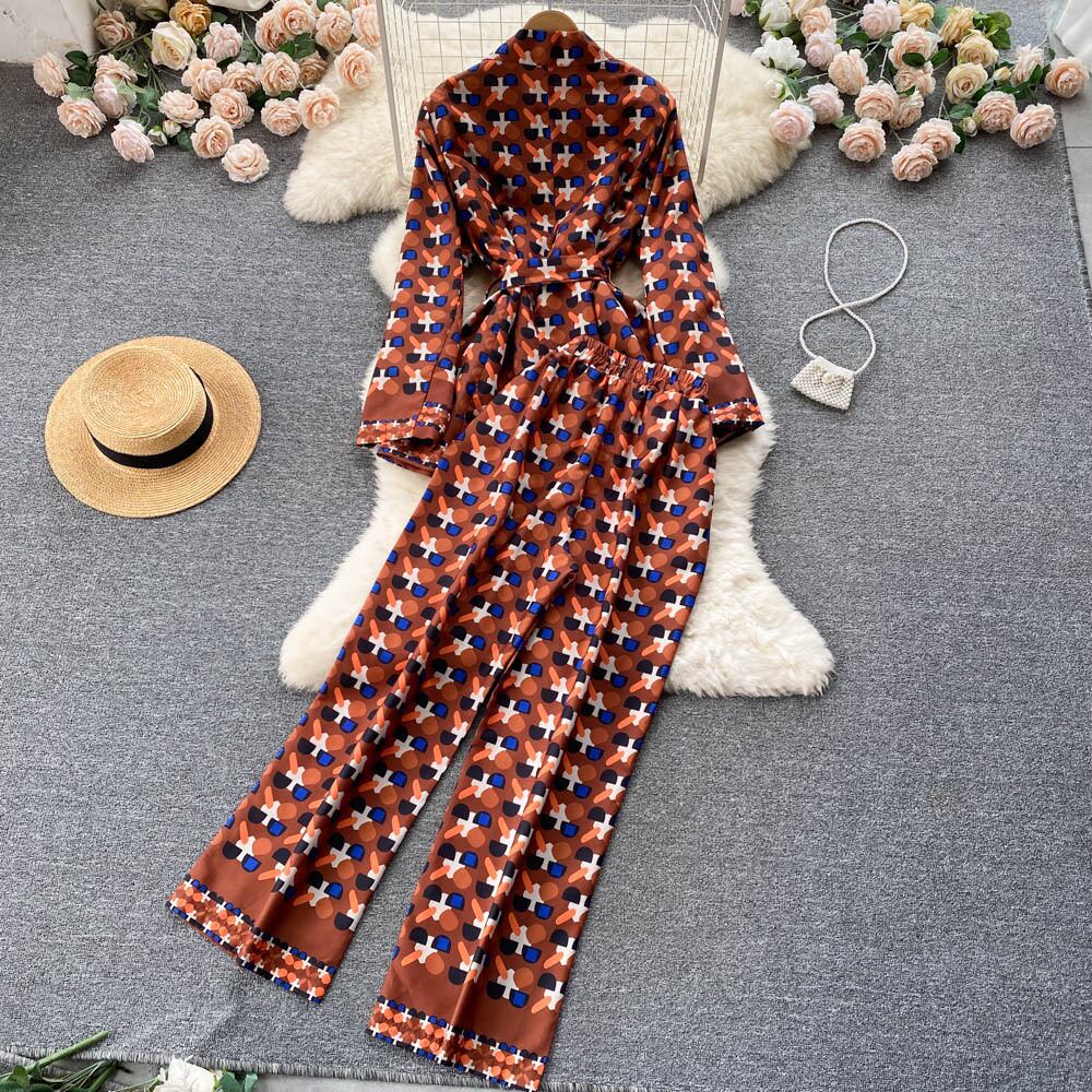 ハイエンド感ツーピーススーツ女性夏気質セレブプリントスーツジャケットハイウエストゆったりワイドレッグロングパンツトレンディ ハイウェスト サマー 夏物 ワイドパンツ lyxaj7997893549