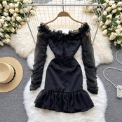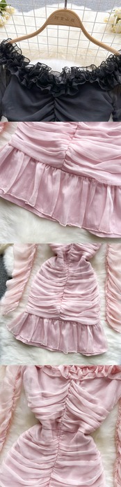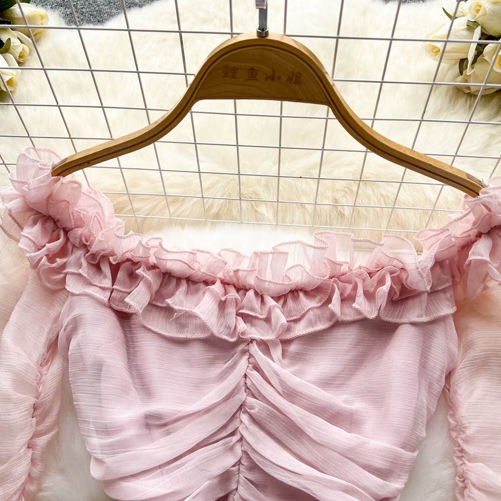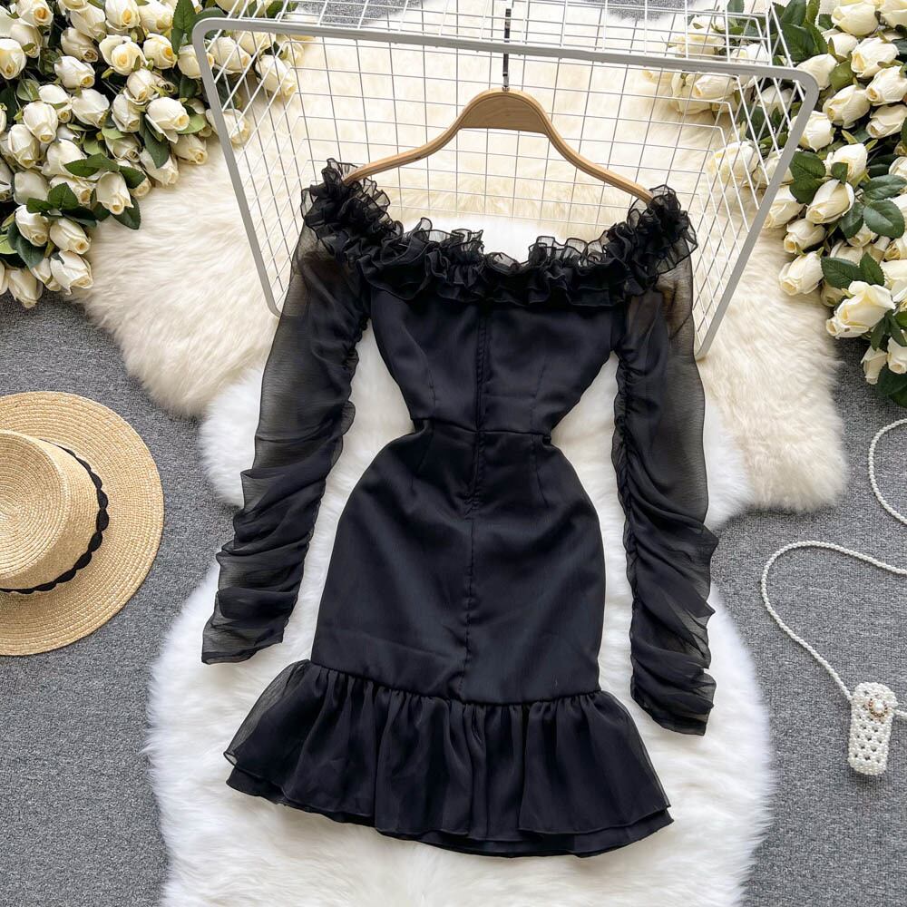 純粋な欲望の花びらワンショルダーフリルウエストフリルドレススリムでスリムな超妖精の甘い気質のスカート 大人ガーリー スウィート キュート カジュアル lyxaj52379630730