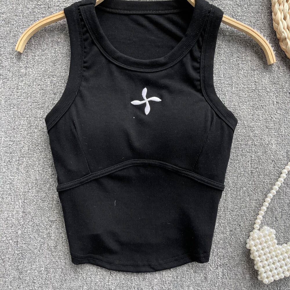 カジュアルスポーツベストレディースアウター2022夏新作絶妙な刺繍スリムフィットショートオールマッチトップ胸パッド付き サマー 夏物 lyxaj60278712254
